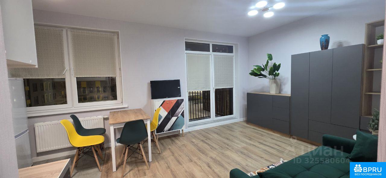 Квартира-студия в новостройке с ремонтом, всей мебелью и техникой в новом ЖК в развитом районе. Квартира сдается собственником, агентских взносов нет В квартире имеется балкончик и отдельная гардеробная, вся мебель и техника: диван, шкаф, варочная панель, холодильник, телевизор,стиралка. Двор без машин с большой детской площадкой, прямо возле дома школа и детский сад, супермаркет Лента. Автобусная остановка в 5ти минутах ходьбы от дома, до станции маршрутка идёт каждые 10 минут. До станции можно дойти пешком, минут за 20. Отвечаю на звонки с 11 до 20ч Агентствам: просьба не беспокоить, мне не требуются ваши услуги.