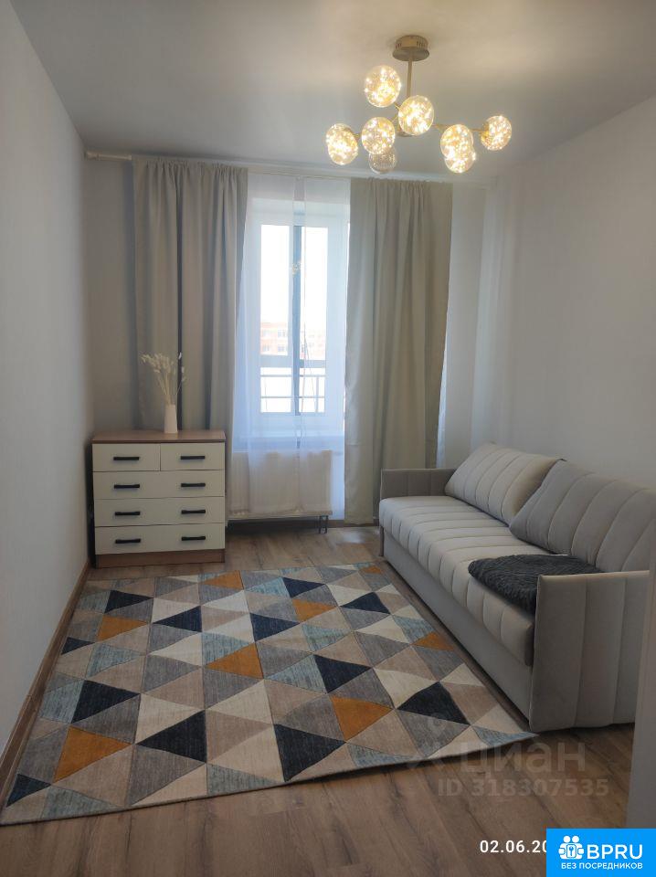 Сдаётся однокомнатная квартира на последнем этаже нового дома на длительный срок. Спальня, кухня, совмещённый санузел, гардероб, застеклённый балкон. Мебель: раскладной двухспальный диван, платяной трехстворчатый шкаф, комод, обеденный стол, стулья, кухонный гарнитур, звукоизолирующая входная дверь. Бытовая техника: плита с духовкой, холодильник, чайник, микроволновка, стиральная машина, кондиционер. Всё новое. окна выходят на прогулочный бульвар. В подъезде два лифта. На первом этаже комплекса множество магазинов, кафе и фитнес-клуб. Объявление от собственника без посредников. Оплата за первый и последний месяц плюс депозит. Без комиссии.