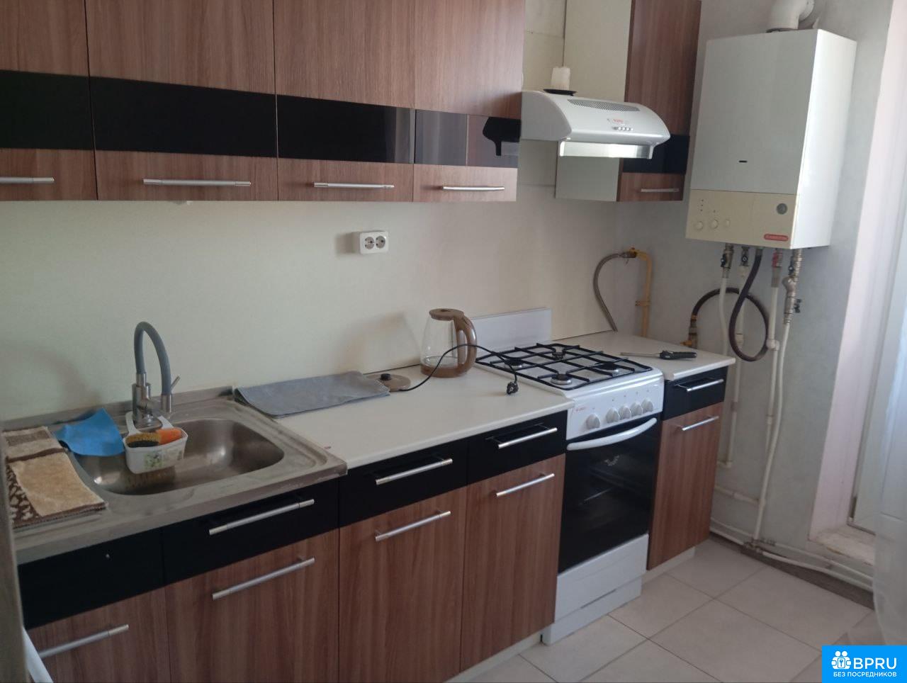 В квартире есть холодильник, плита, стиральная машина, индивидуальное отопление.