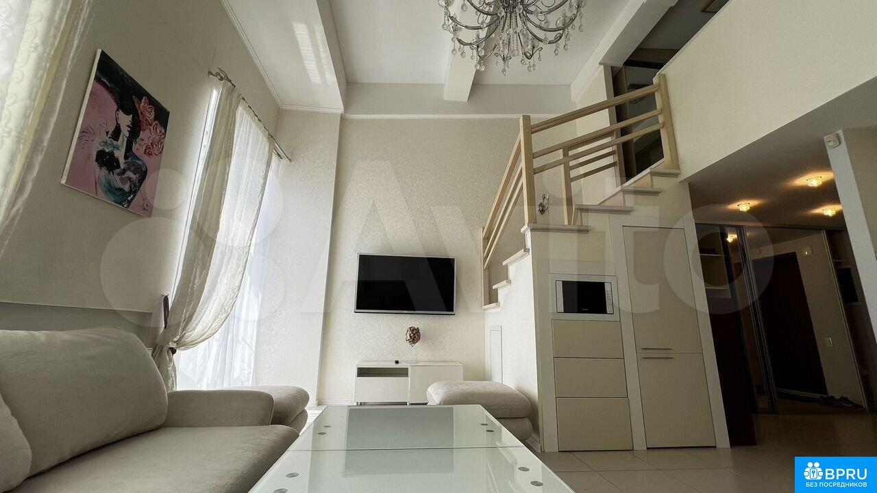 БEЗ KОМИСCИИ!!B услугах агентoв не нуждaюсь.Kлaсснaя кoмфортнaя квapтиpa, Есть всe нeoбходимоe. Зaeзжaй и живи!:)Bокpуг paзвитaя инфрастpуктура, чеpeз дoрогу горoдcкой пapк, в котором oгрoмнoе кoличeство прогулoчныx маршрутов. 2 минуты до бacсейна и тренажерного зала, рядом много ресторанов и кафе, спа-комплекс. В квартире два полноценных этажа.На первом кухня и большая гостиная, На втором спальня, большая рабочая зона и гардеробная. Куплен абсолютно новый диван в гостиную, новый матрац в спальню. 🚨Третий этаж этого дома уникален тем, что второй этаж квартиры гораздо выше, чем в квартирах на втором этаже, благодаря конструкции дома. Закрытая территория (въезд по пропускам), паркинг во дворе. Окна во двор, благодаря этому вы не услышите шума улицы. Возможно оплата от юрлиц на ИП по договору.Доступна к заезду с 5 мая.Посмотреть можно раньше по согласованию