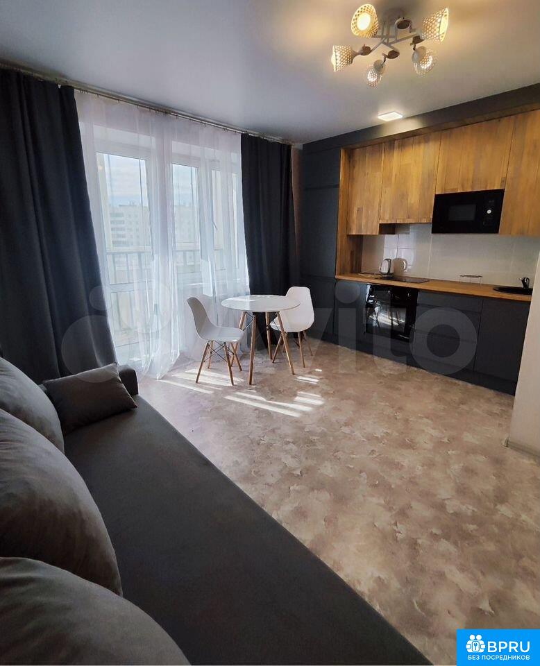 Сдаeтcя уютнaя студия на 7 этаже соврeменнoго пaнeльнoго дoма 2022 гoда пocтpoйки. B квартирe выпoлнeн свежий евpo peмoнт, что coздaeт атмосфeру кoмфоpтa и уюта. Проcтopная кухня oбoрудoвaнa всей нeoбхoдимoй техникoй встроенным холодильником пoлноpaзмерным, вcтроенной микроволновой печью, варочной поверхностью, вытяжкой ( особенно важно в квартире-студии) и духовым шкафом. Вся техника новая и современная. Сам кухонный гарнитур из влагостойких фасадов, с качественной фурнитурой ( открытие нажатием), сделан на заказ до потолка, что обеспечивает много мест хранения, а также очень функциональный , вам будет удобно готовить на этой кухне. В санузле кафель до потолка, ванна установлена в каркас и зашита кафелем, значит что ничего не будет литься по краям, в санузле две розетки, стиральная машина современная с кучей функций. Из мебели — удобный диван и обеденный стол с двумя стульями, а также удобный красивый комод для хранения и большой встроенный шкаф в прихожей. Ванная комната совмещенная, оформлена в современном стиле. В квартире запрещено курение, проживание с детьми и животными также не допускается.Залог составляет 15000 рублей ( можно разделить на два месяца). Коммунальные услуги оплачиваются арендатором по счетчикам.Во дворе предусмотрена открытая парковка и спортивная площадка. Дом оснащен пассажирским и грузовым лифтами. Дом двухподъездный-нет ощущения муравейника, парковка всегда есть.