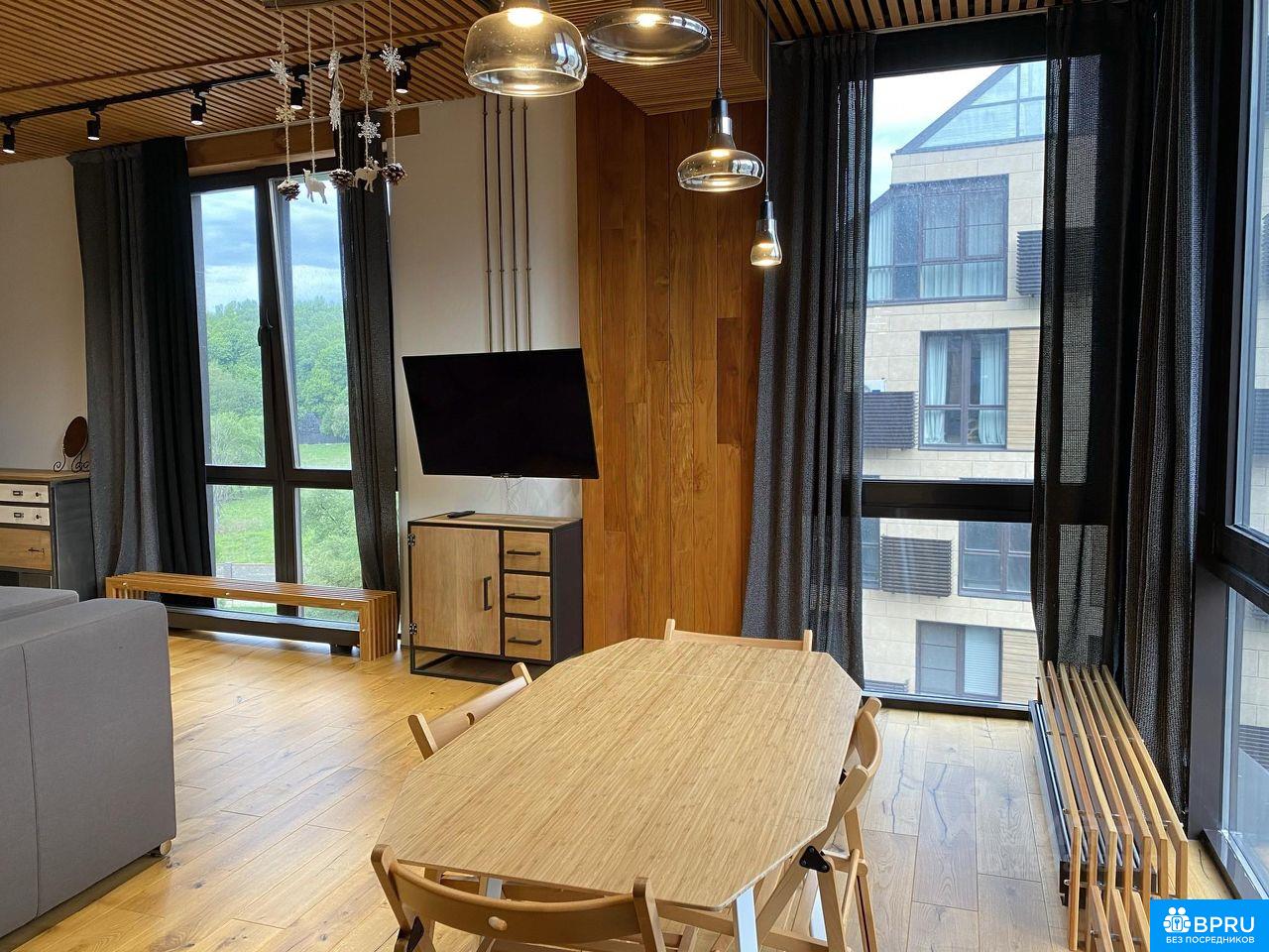 Дизайнерская квартира в стиле лофт с деревянными потолками, паркетом, стеновыми панелями из тика, сантехникой Noken, плиткой Porcelanosa, кирпичными перегородками, панорамным остеклением, высокими потолками. Территория ЖК охраняемая, находится рядом с заповедником и речкой Сходней, на территории красивая набережная, открытый бассейн, детские и спортивные площадки. В доме большой холл, консьерж. На этаже кладовая. На территории располагается фитнес Репаблика и театральная студия ДОМ, аптека, кафе и продуктовый магазин рядом с остановкой общественного транспорта возле комплекса. Комплекс граничит с полями гольф клуба.