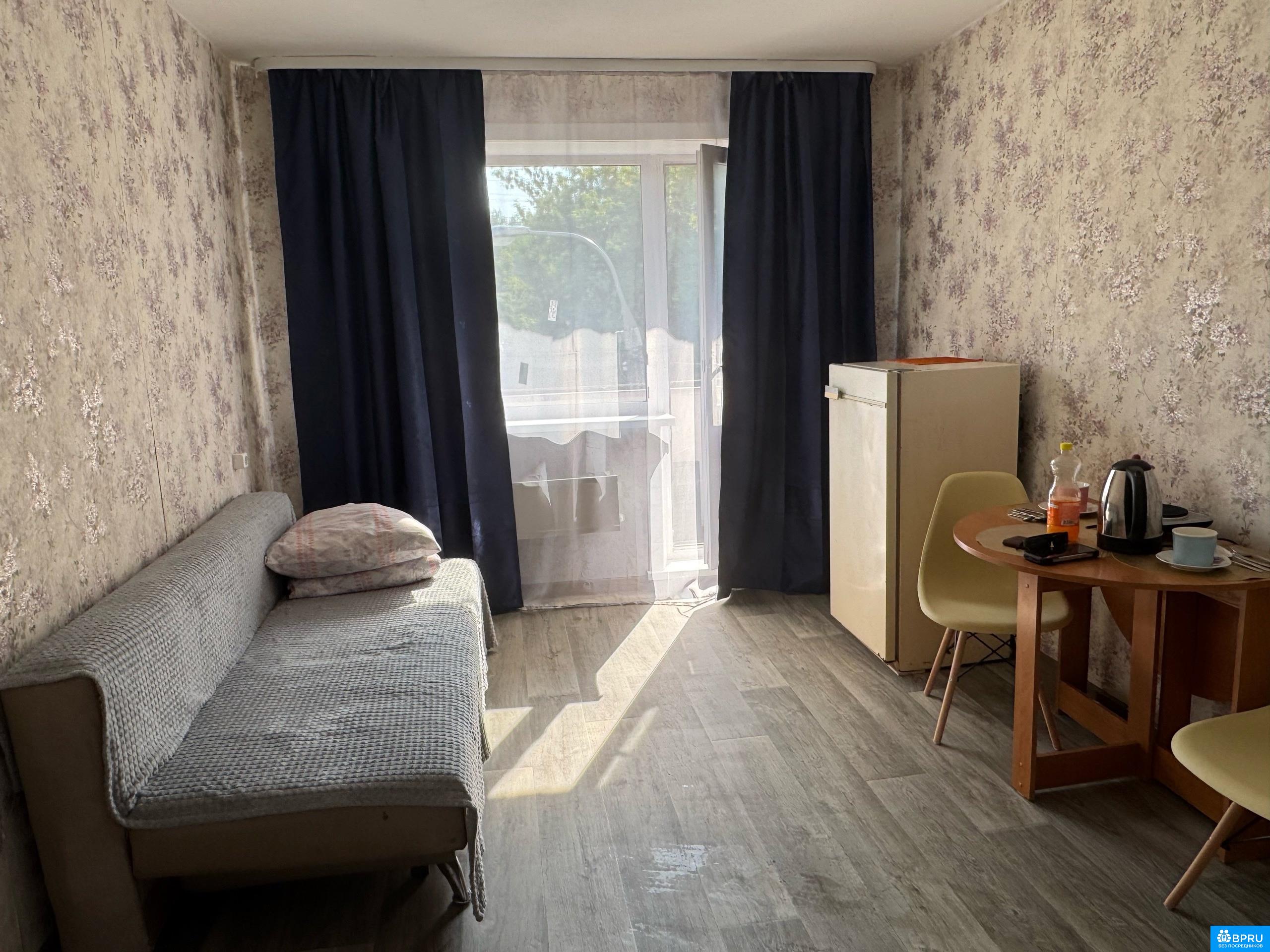 В комнате сделан косметический ремонт, чистенько, имеется балкон. Из необходимого:диван,холодильник,стол,стулья,посуда,чайник,плитка,чистый комплект постельного белья и полотенец. Ванная комната и туалет на 4 комнаты.В шаговой доступности автобусная остановка,поликлиника, магазины Янта и Слата. В 5 минутах езды СильверМолл и другие ТЦ. Условия аренды: договор аренды напрямую с собственником, на длительный срок. Залог в размере 5000руб. Сдается желательно холостому, работающему,чистоплотному,мужчине, так как в соседних комнатах проживают работающие,непьющие,адекватные мужчины.