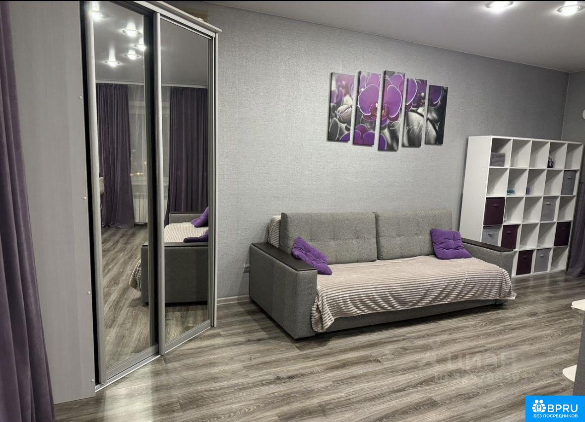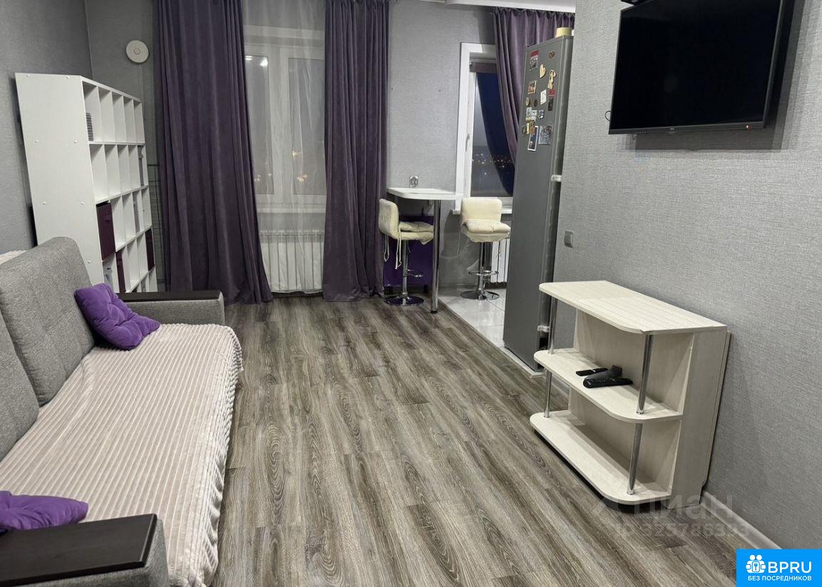 Уютная квартира студия, вид из окна на новый мост. Лоджия вид во двор. Солнечная сторона. В квартире все есть для проживания: техника, мебель, посуда. Развитая инфраструктура района: рядом больница, школа, дет сад, магазины, аптеки и кафе на первом этаже дома.