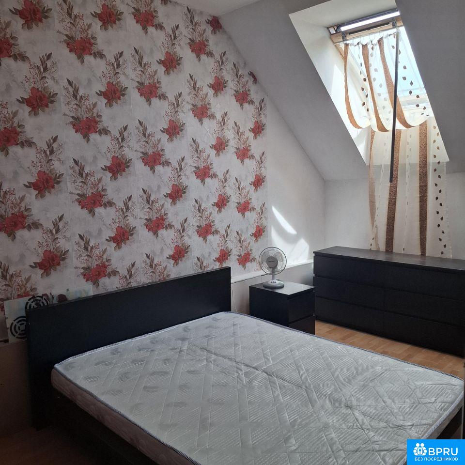 Просторная трёхкомнатная квартира на мансардном этаже сдаётся на срок от 3-х месяцев. 7/7 без лифта. Косметический ремонт, чистая, светлая. Вся мебель, техника есть. Конечная остановка рядом, транспорт по всем направлениям. Дет. сад во дворе.