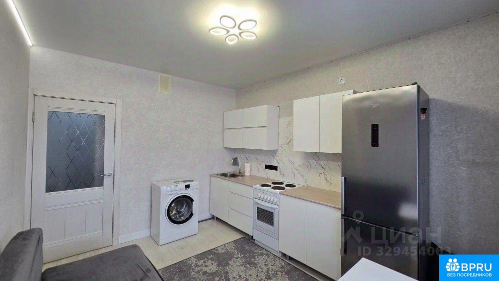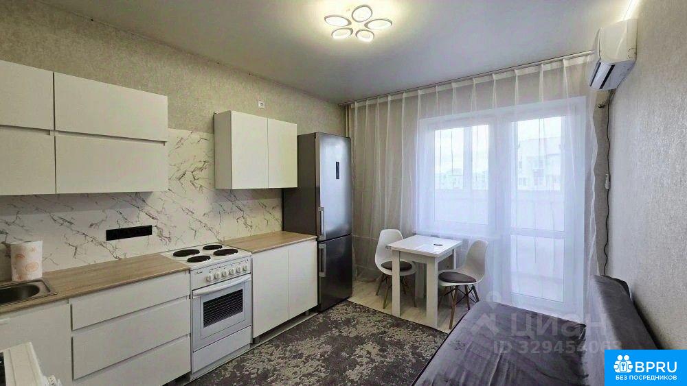 Сдаётся уютная однокомнатная квартира на длительный срок. Залог составляет 22000 рублей. Коммунальные услуги оплачиваются арендатором по счётчикам. Разрешено проживание с детьми и домашними животными. Квартира расположена на 15 этаже панельного дома, построенного в 2020 году. В доме есть пассажирский и грузовой лифты. Во дворе открытая парковка и детская площадка. В квартире выполнен свежий евро ремонт. Просторная комната оборудована шкафами и телевизором. Из мебели также имеется удобный диван и обеденный стол. Кухня оснащена современной бытовой техникой, включая холодильник и стиральную машину. Санузел совмещённый, оформлен в современном стиле. Балкон застеклён и обустроен для комфортного отдыха. Вид из окон открывается на городские пейзажи.