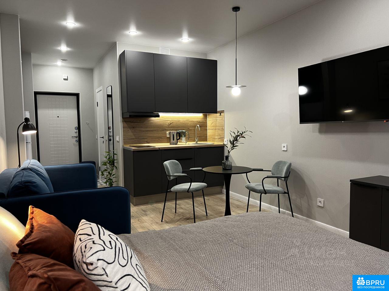 Стильная и уютная студия возле Аэропорта на длительный срок в доме комфорт-класса микрорайона Родные Просторы, где предусмотрено все для комфортной жизни. Поликлиника, магазины, храм, аптеки, салоны красоты, медицинская лаборатория, пункты выдачи Ozon, Wildberries и Яндекс Маркет, уютные кафе. В 2026 году планируется открытие масштабного фитнес-клуба Balance с открытым подогреваемым бассейном с морской водой, банным комплексом и спа-зоной. Квартира расположена на 12 этаже 18 этажного дома с видом на парк, где предусмотрены спортивные площадки, велодорожки, пространство для занятий йогой. ЖК оснащен cистемой умный дом, видеонаблюдением, охраной. Парковка во дворе. Для вашего комфорта в квартире: - полноценная кровать 160*200 и компактный раскладной диван, - телевизор SMART, - кондиционер, - микроволновка, холодильник, вытяжка - электрическая печь и варочная панель, - вместительный шкаф при входе, хозяйственный на балконе (предусмотрен теплый пол) и комод - ванна, стиральная машина - бытовые полезности (пылесос, гладильная доска, утюг, сушилка), - проведен интернет. Ежемесячная арендная плата 30 000 руб., ЖКУ и интернет входят в стоимость. Отдельно оплачиваются коммунальные услуги по счетчикам. При заселении залог в размере 30 000 руб. Условия заселения: -рассматриваем нанимателей на срок аренды не менее 11 мес. -предпочтительно 1 человеку / семейной паре без детей и животных -просьба риелторов не беспокоить