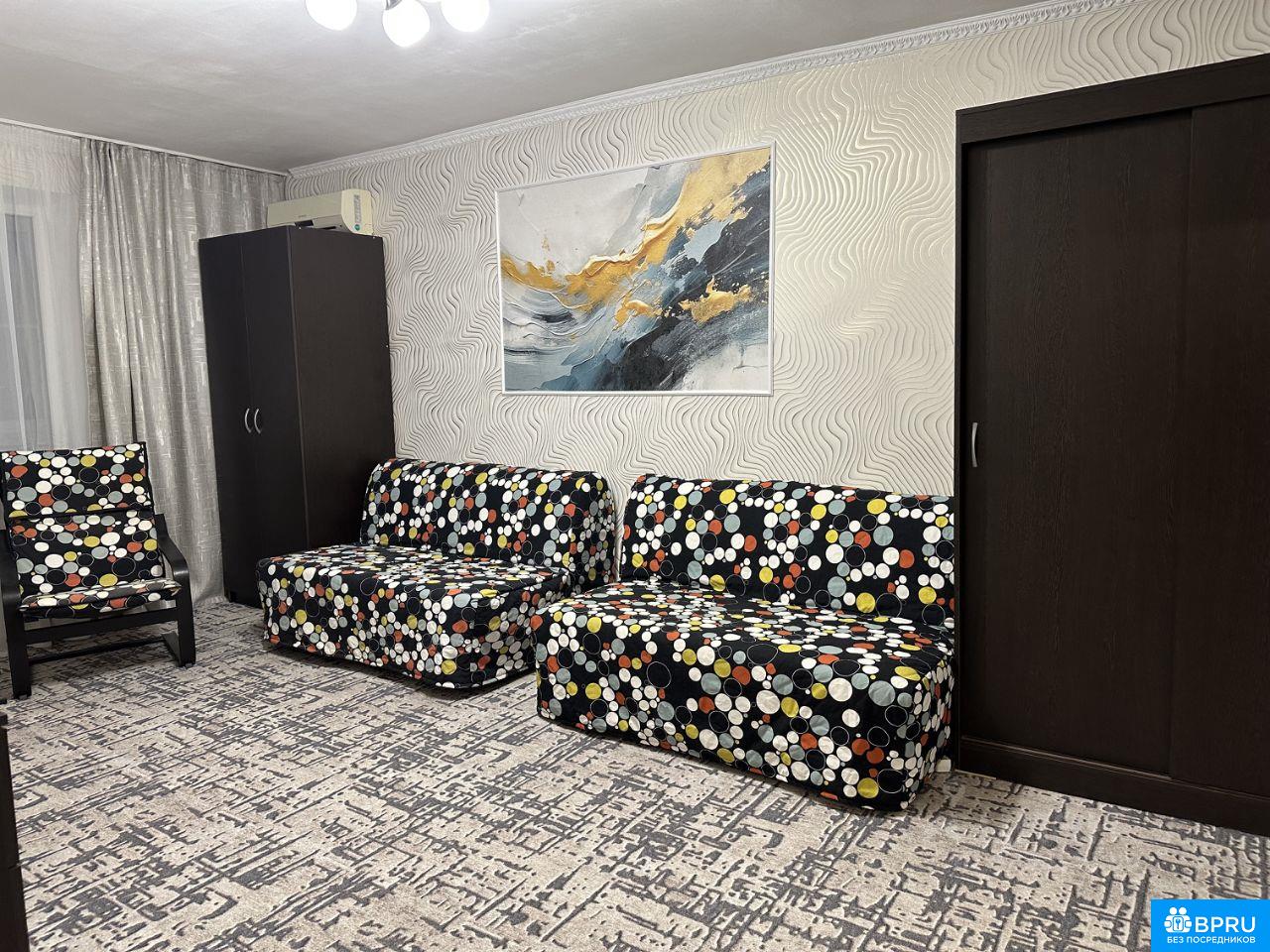 В двух остановках от кинотеатра АВРОРА, рядом, в одном квартале семейный Магнит и Ашан.30м до остановки транспорта. Для ценителей тишины-последний этаж, а это значит-нет соседей и соответственно постоянного топота и шума сверху. Тихий двор, много зелени. В квартире есть все .Мебель Икея. Балкон застеклён. В квартире свежий ремонт. Залог 37000 .Коммунальные платежи оплачиваются отдельно. .Без детей и животных. ----- Примечание: у собственника могут быть дополнительные пожелания к жильцам - обсудите их в чате или по телефону
