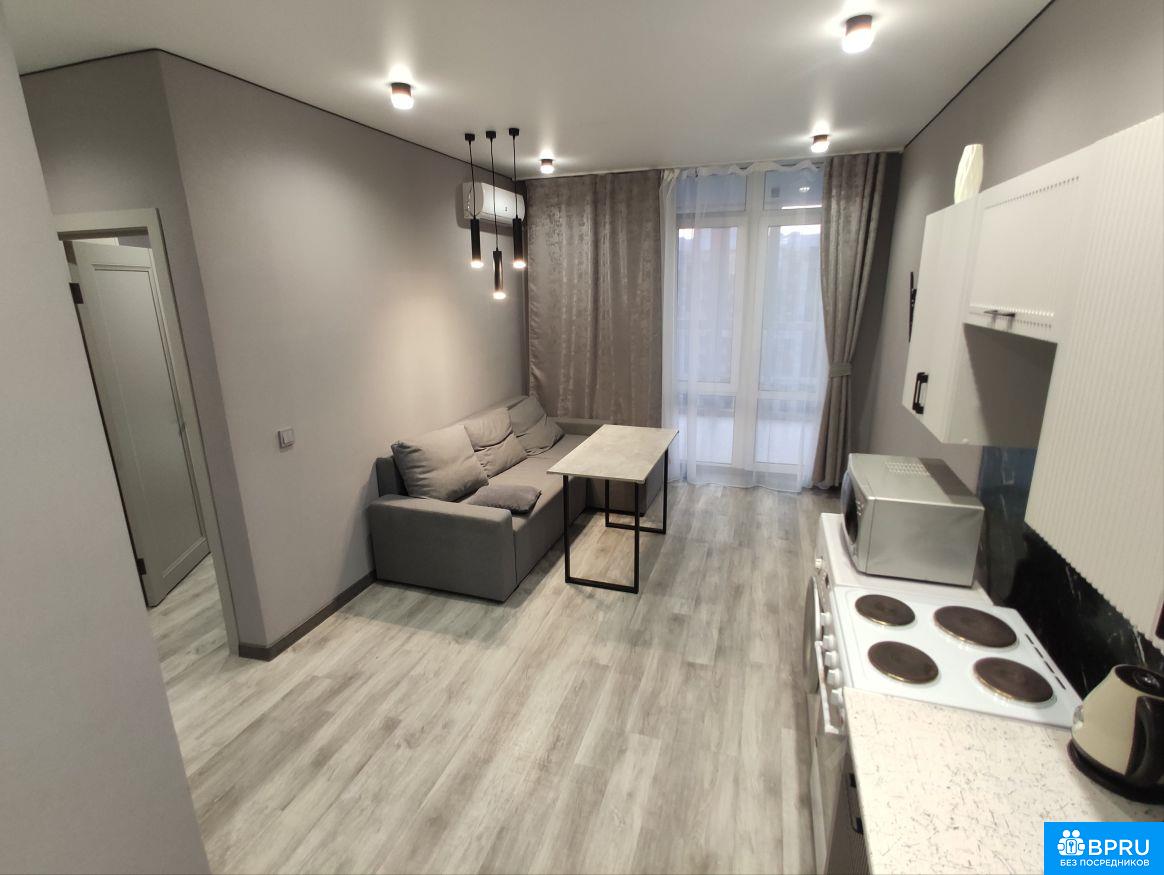 Сдается уютная однокомнатная квартира в современном доме 2022 года постройки. Квартира находится на 23 этаже из 24, что обеспечивает потрясающие виды на город. Квартира с евроремонтом, полностью готова для комфортного проживания. В комнате и на кухне есть вся необходимая мебель. В квартире установлена современная техника: кондиционер, холодильник, телевизор и стиральная машина, интернет роутер (300мб/с). Дом в отличном состоянии, с двумя пассажирскими и одним грузовым лифтом. Красивая и чистая придомовая территория с современной детской площадкой и зонами отдыха для взрослых, где можно сидеть с семьёй и друзьями в беседках. В шаговой доступности находятся школы, детские сады и магазины, что делает эту квартиру отличным вариантом для семей. Удобная транспортная развязка позволит быстро добраться до центра города и других районов. Аренда квартиры осуществляется от собственника, без комиссии. Предусмотрен залог и предоплата. Квартира готова к заселению, идеально подходит для одного человека или пары.