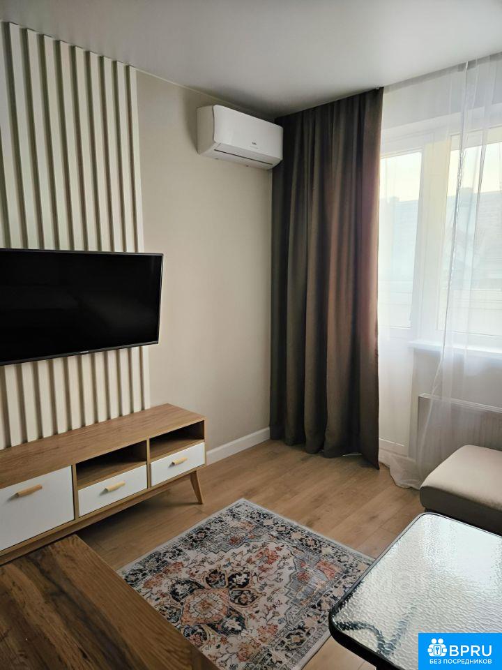 Студия с современным дизайном, большой застекленной лоджией, всей необходимой техникой, посудой, постельным. Солнечная и тёплая. Спальное место - большой угловой диван, раскладывается на большую 2-спальную кровать. Хранение - огромный встроенный шкаф-купе с зеркалом в прихожей. Техника: кондиционер, духовка, плита, вытяжка, стиральная машина, микроволновка, утюг, телевизор, большой холодильник, wi-fi роутер. В ванной электрический полотенцесушитель, гигиентический душ. Есть спальные принадлежности (подушка, одеяло), посуда, утюг, сушилка - все необходимое для комфортного проживания. Самый крупный жилой комплекс в России - есть все для комфортной жизни, можно не выезжать за пределы. Идеальное место для детей всех возрастов, собачников и спортсменов. Я - собственник. ЖКХ не входят в стоимость аренды, оплачиваете по квитанции от УК (4000-5000 руб) Залог 5000 руб. Возможна оплата на ИП. Аренда от 3 мес.
