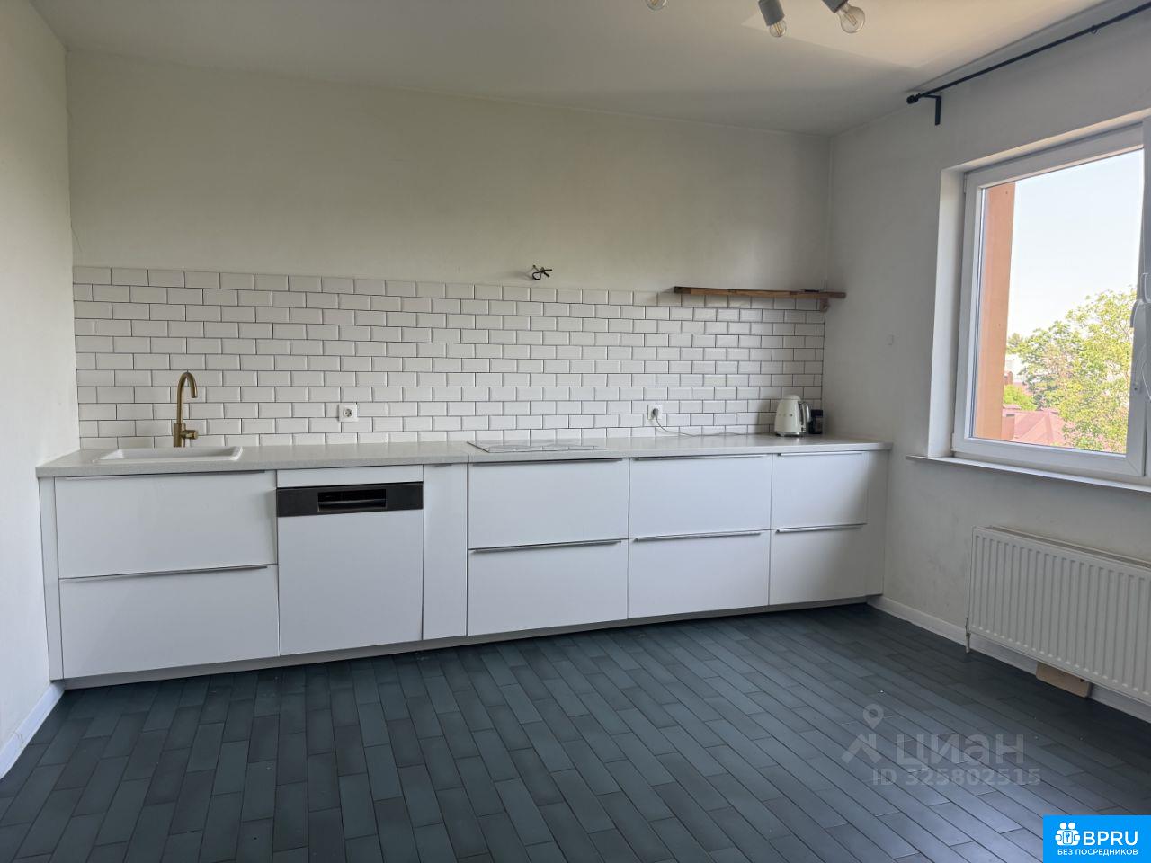 очень светлая и уютная квартира, из мебели самое необходимое (кухонный гарнитур), диван, шкаф и два стеллажа, посудомоечная машина