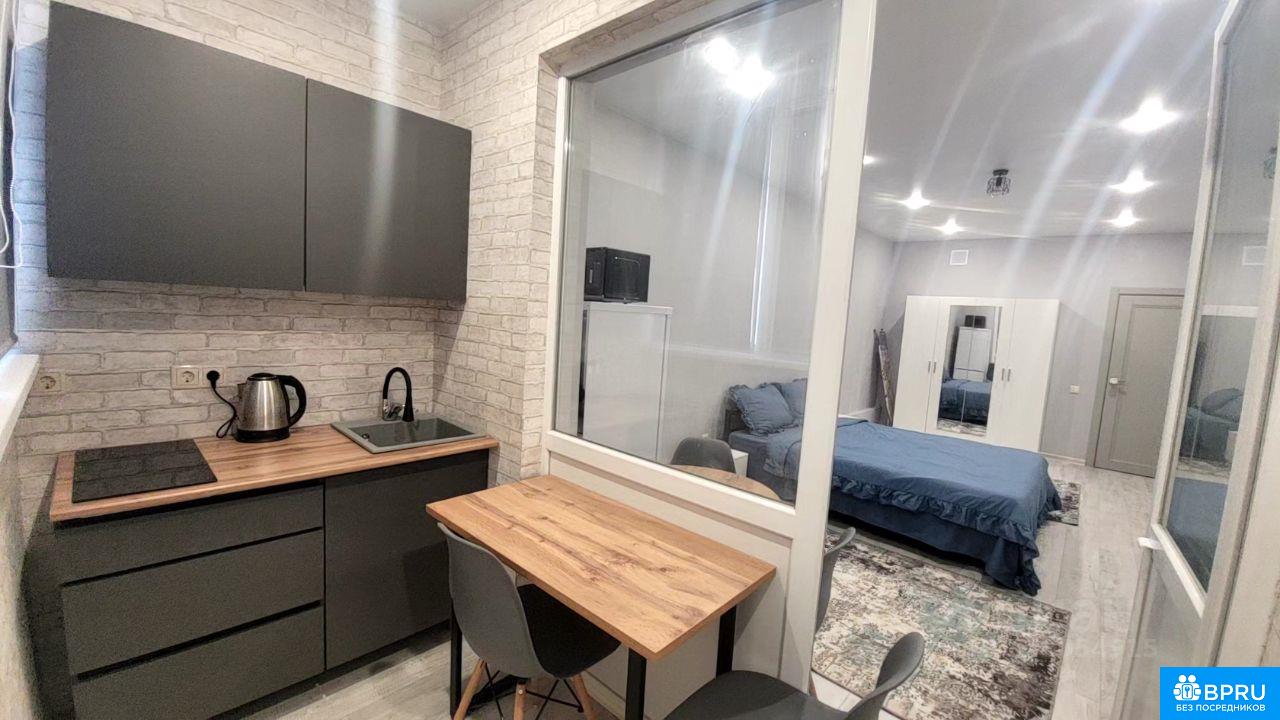 Сдаётся уютная студия площадью 30 кв. м. на 19 этаже 25-этажного монолитного дома, построенного в 2022 году. Высокие потолки в 2.75 метра и окна, выходящие на улицу и во двор, создают ощущение простора и света. Квартира оборудована балконом, откуда открывается прекрасный вид. В квартире сделан современный евроремонт. Есть вся необходимая мебель как на кухне, так и в комнате, что позволит вам сразу заселиться и комфортно жить. Кухня площадью 6 кв. м. оснащена современной техникой: холодильником, телевизором и стиральной машиной. В квартире также есть кондиционер, который обеспечит комфортную температуру в любое время года. Совмещённый санузел оборудован ванной. Дом оснащён двумя пассажирскими и двумя грузовыми лифтами, что исключает проблемы с ожиданием. Есть многоуровневая парковка, поэтому вам не придётся беспокоиться о месте для автомобиля. В доме предусмотрен пандус для удобства передвижения. Район предлагает все необходимые условия для удобной жизни. В шаговой доступности расположены школы, детские сады, клиники и магазины, поэтому всё необходимое всегда под рукой. Отличная транспортная доступность: рядом остановки общественного транспорта, поэтому можно быстро добраться до любой части города. Квартира сдаётся напрямую от собственника, что исключает дополнительные комиссии. Оформление договора аренды возможно на длительный срок. Залог и предоплата обсуждаются индивидуально при просмотре. Приглашаем вас на просмотр! Свяжитесь с нами, чтобы записаться на удобное для вас время. Не упустите возможность поселиться в этой замечательной квартире!