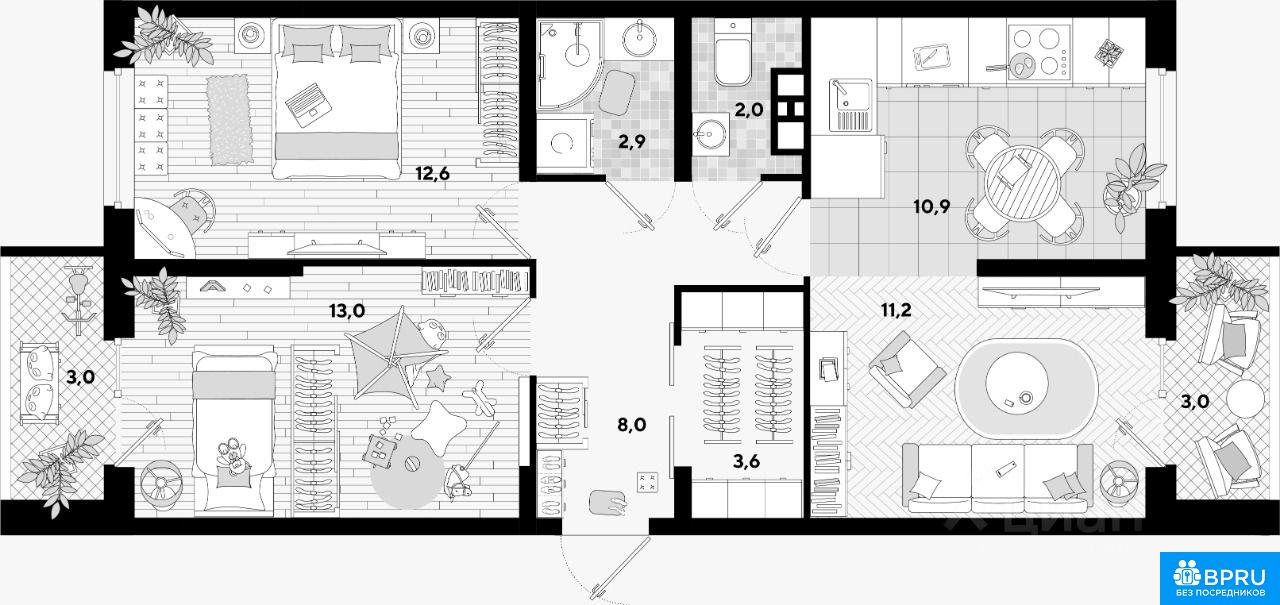 Собственник. Агентствам не беспокоить! Сдается просторная 3-х комнатная квартира на длительный срок (от года) по договору. Новый дом, качественный ремонт. Квартира находится в ЖК Самолет, дом премиум класса. Благоустроенная территория: спортивные и детские площадки, магазины, школа, детские сады. 2 спальни, кухня, гостиная, гардеробная, раздельный с/у, две лоджии. Квартира укомплектована всем необходимым для жизни. Имеется мебель (кровати, диван, столы) и бытовая техника (холодильник, стиральная машина, микроволновая печь, индукционная варочная поверхность, духовой шкаф, чайник, утюг, пылесос). Установлен бойлер. Вся техника новая из среднего ценового сегмента надежных брендов (Gorenje, LG, Philips, JAX). В каждой комнате установлена инверторная сплит-система, имеется телевизор. Заведен интернет (оптика), установлен хороший роутер. Телевидение цифровое через приложение Смотрешка. В квартире нельзя курить. Проживание без животных. Залог возвращается при условии соблюдений правил в договоре аренды.