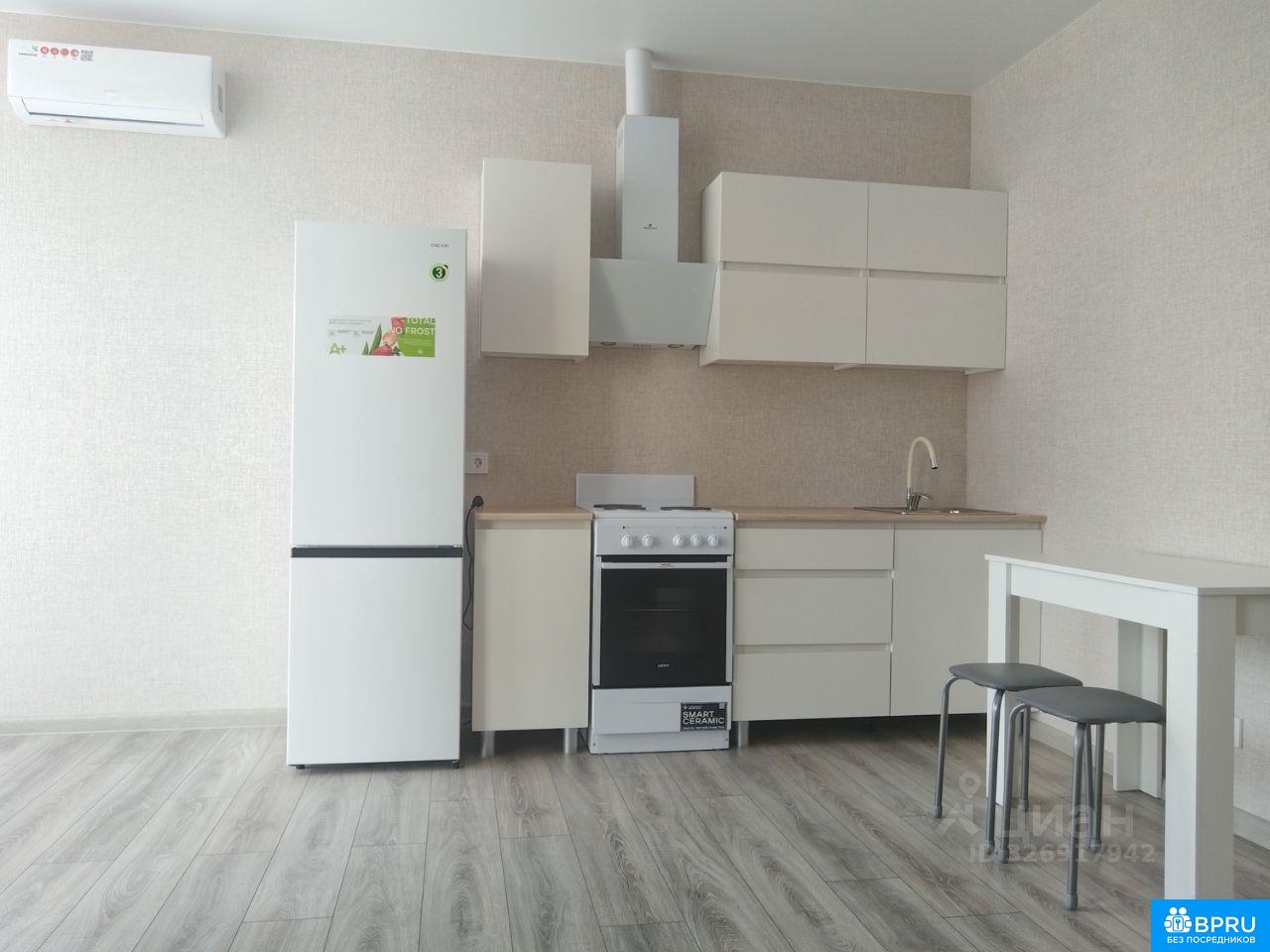 Квартира-студия. Просторная, светлая и тёплая. Ремонт, новые мебель и техника. В квартире ещё никто не проживал. Есть всё необходимое.