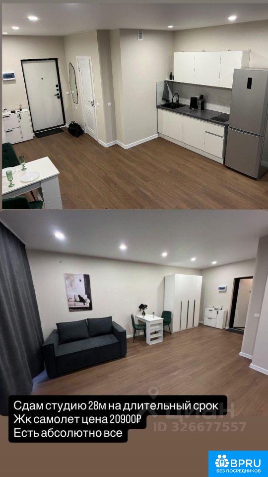 Сдается абсолютно новая студия 28 м². Вы будете первым жильцом в светлой, просторной и уютной квартире — всё новое, никто не жил. В квартире есть всё необходимое для комфортной жизни — заезжайте и живите с первого дня: • кухонный гарнитур с посудой и столовыми приборами • плита •робот пылесос • микроволновая печь • холодильник • электрический чайник • телевизор со Smart TV • удобный компактный раскладной диван • места для хранения (шкаф, тумбы, стеллажи) •сушилка •утюг • гладильная доска • полностью оборудованная сантехникой ванная комната Вся мебель и техника абсолютно новые. Современный жилой комплекс с развитой инфраструктурой. В шаговой доступности: супермаркеты, фудмаркеты, овощные и мясные лавки, кафе и кофейни. Рядом несколько ТЦ и большое количество хозяйственных магазинов. Дом входит в зону доставок Самоката и Яндекс Лавки. Пункты выдачи WB, OZON, Яндекс Маркет — поблизости. Условия аренды Квартира сдается на длительный срок (от 6 месяцев). Предпочтение — некурящим жильцам без домашних животных и детей. Стоимость 21 000 ₽ + КУ Залог 20 000 ₽ (возвращается при выезде). Можно разбить на 2 месяца Пишите в сообщения. С удовольствием покажу квартиру и отвечу на все вопросы.