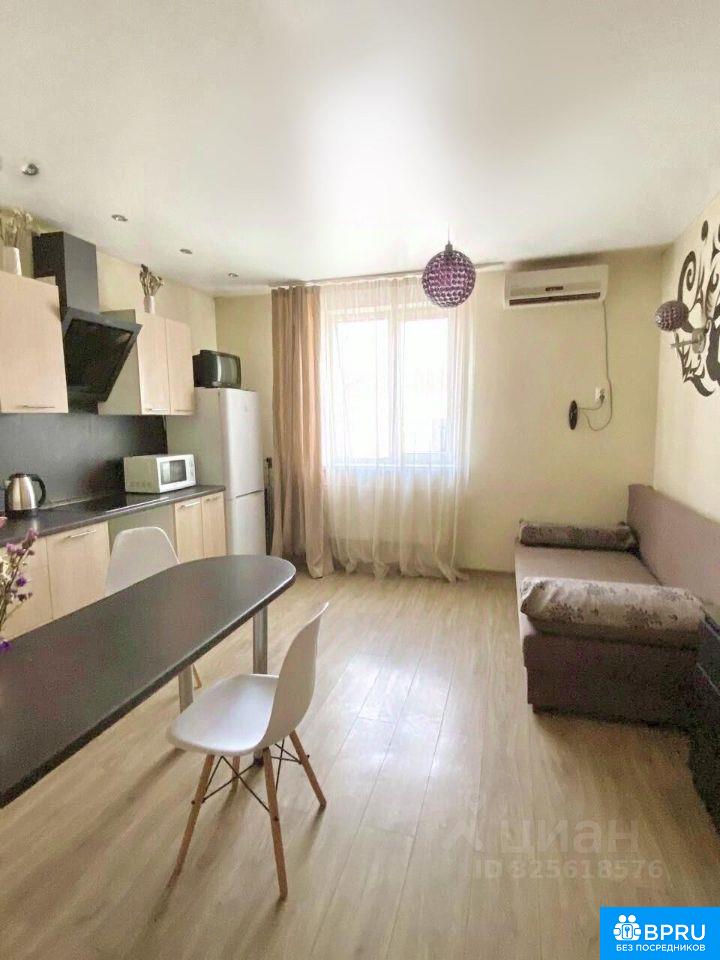 Предлагается в аренду светлая и уютная студия. Квартира полностью готова к комфортному проживанию: установлена вся необходимая мебель и бытовая техника, включая электроплиту, кондиционер, холодильник, телевизор, стиральную машину и водонагреватель. В комнате расположен раскладной диван, рассчитанный на двоих, шкаф для хранения и обеденная зона. Окна выходят на тихий двор. Дом кирпичный, зимой тепло, летом прохладно. В шаговой доступности находятся остановки маршруток и автобусов, магазины, аптеки и всё необходимое для жизни. Во дворе есть бесплатная парковка. Коммунальные услуги оплачиваются по квитанциям, тарифы невысокие. Идеальный вариант для одного человека или пары. Без посредников. Звоните, оперативный показ.