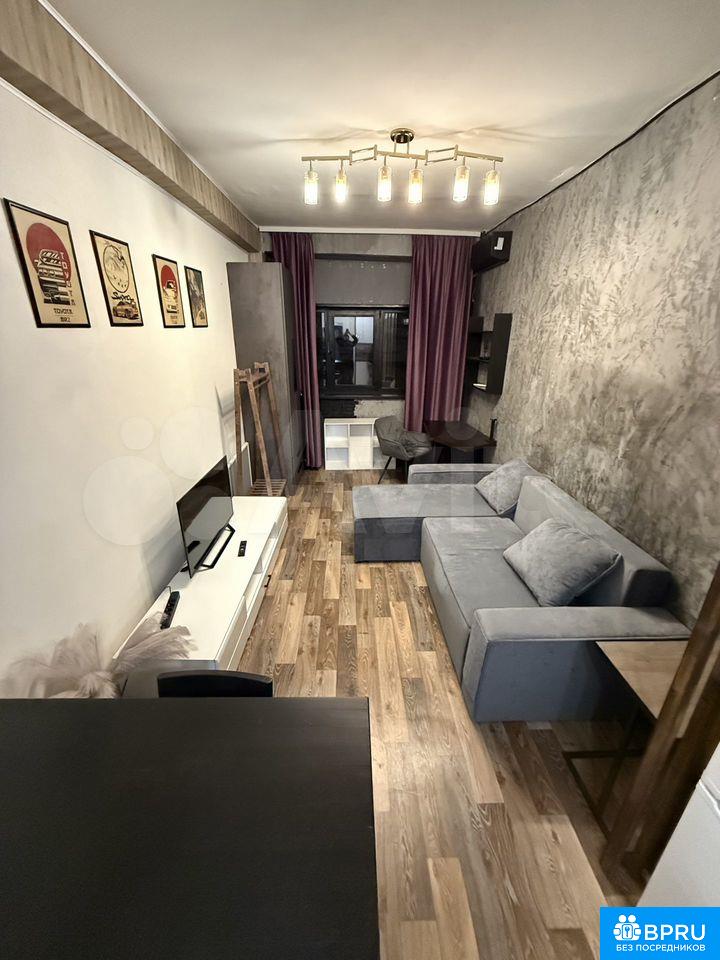 Собственник. Сдам уютную студию, 27 кв., в стиле лофт, полностью меблированная. Техника: телевизор, wi-fi роутер, холодильник, печка с духовым шкафом, стиральная машина, микроволновка, кондиционер инвертор (работает и как печка), чайник. Интернет и телевидение подключены. Цена аренды 25 000 т.р.+ коммунальные услуги. Залог 14000 т.р.