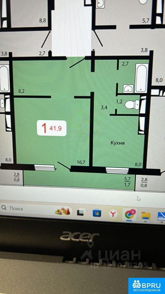 Очень светлая и тёплая квартира. Зал закрывается. Гарнитур будет на кухне 1 мая. Холодильник, стол, табуретки на кухне.