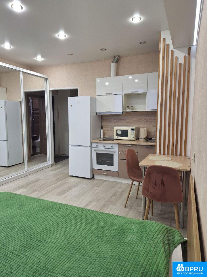 Светлая студия с современным ремонтом Уютная и светлая студия площадью 30 м², 8 этаж. В квартире есть все необходимое: двуспальная кровать (160 см), 2 больших шкафа, обеденная зона, сушилка, гладильная доска. Полностью укомплектована техникой: холодильник, плита, духовка, вытяжка, СВЧ, стиральная машина, чайник, напольный вентилятор. Тёплые полы в жилой зоне и ванной. Застеклённый балкон, окна выходят во двор на закатную сторону. Дом с закрытым двором, 2019 года постройки. Хорошее расположение, удобная транспортная доступность, рядом магазины и всё необходимое для комфортной жизни. Отлично подойдёт для одного человека или пары. Возможно проживание с животным. ЖКУ включены в стоимость, счетчики оплачиваются отдельно. Лучше писать сообщениями АГЕНТОВ ПРОСЬБА НЕ ЗВОНИТЬ