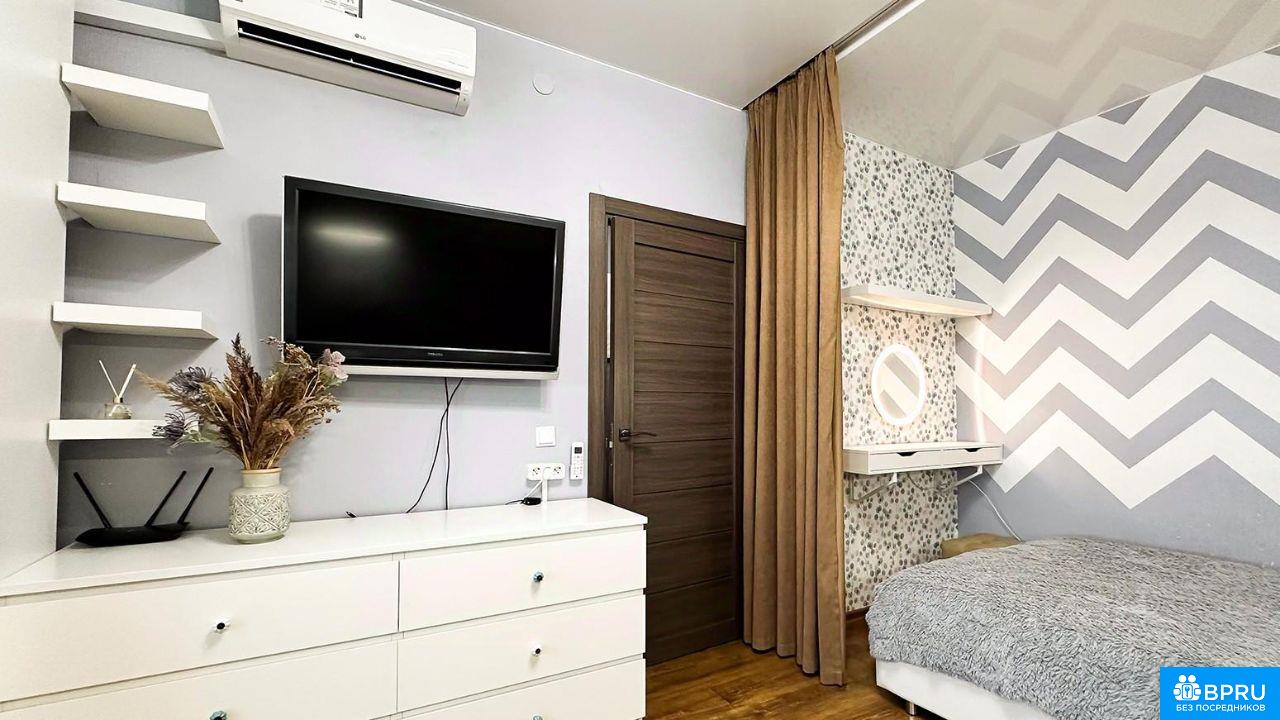 Уютная 1-комнатная квартира с панорамным видом на озеро | Люберцы Сдаётся светлая и комфортная однокомнатная квартира с качественным ремонтом и красивым панорамным видом на озеро. Перед окнами нет плотной застройки, поэтому из квартиры открывается просторный и приятный вид. Квартира продумана для комфортного проживания: - современный ремонт - большое количество шкафов и систем хранения - оборудовано рабочее место - гостевой диван - отдельный косметический столик (женский уголок) Кухня со встроенной техникой: - варочная панель - духовой шкаф - микроволновая печь - холодильник - чайник - телевизор В квартире установлен кондиционер. В ванной выполнен полный современный ремонт, есть место для хранения, установлена стиральная машинка. На балконе оборудованы дополнительные места для хранения и специальные крючки, что удобно для бытовых вещей. В доме работает консьерж, благоустроенный двор, детская площадка. Квартира очень функциональная, уютная и подходит для комфортного проживания одного человека или пары без детей.