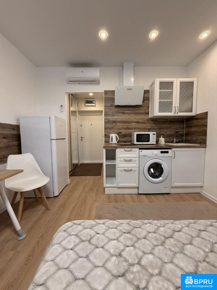 Сдается студия с современным ремонтом на длительный срок от СОБСТВЕННИКА. Метро в 5 минутах ходьбы по благоустроенному ЖК. Квартира оборудована всем необходимым для комфортного проживания: двуспальная кровать, кондиционер, холодильник, микроволновая печь,плита, стиральная машина. В комнате также есть рабочий стол и телевизор. Санузел совмещенный, оснащён душевой кабиной . В квартире установлен вместительный шкаф и кровать с подъёмным механизмом. Дом расположен в районе с развитой инфраструктурой. В доме ВБ, Озон, КБ, спортзал. В соседнем доме Лента и Пятерочка. При заселении вносится оплата за первый месяц и депозит (равен размеру аренды за месяц). Арендатором также оплачиваются вода и свет по счётчикам, + интернет. Курение запрещено.