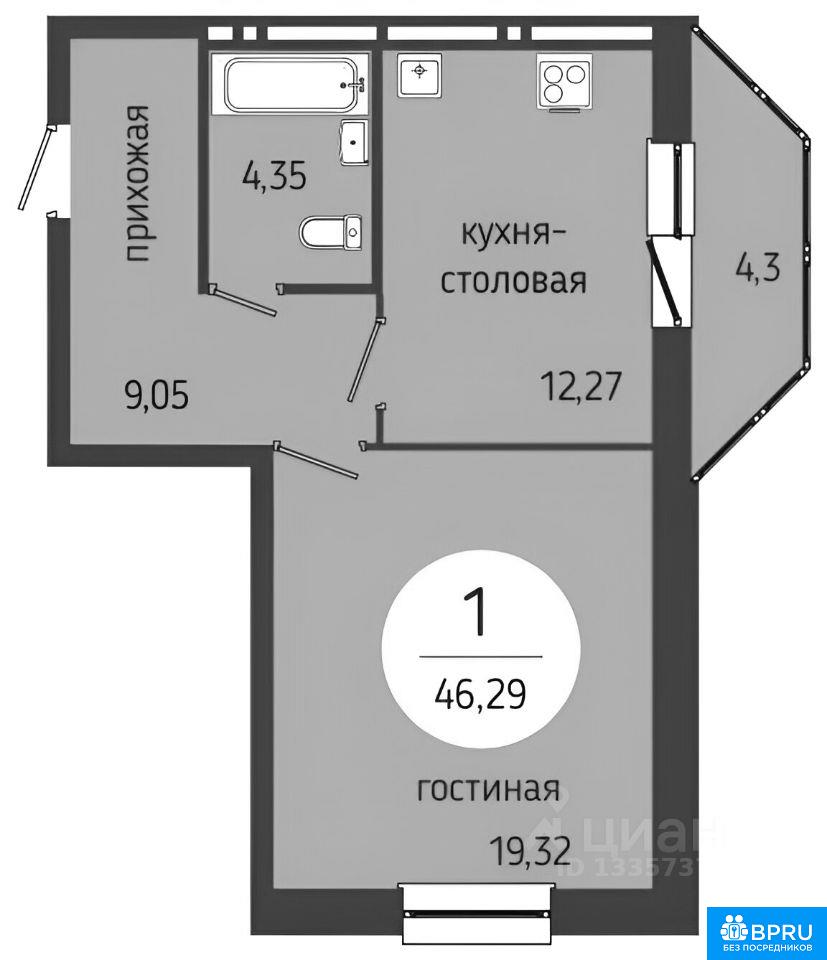 • 1 комн Планировка
