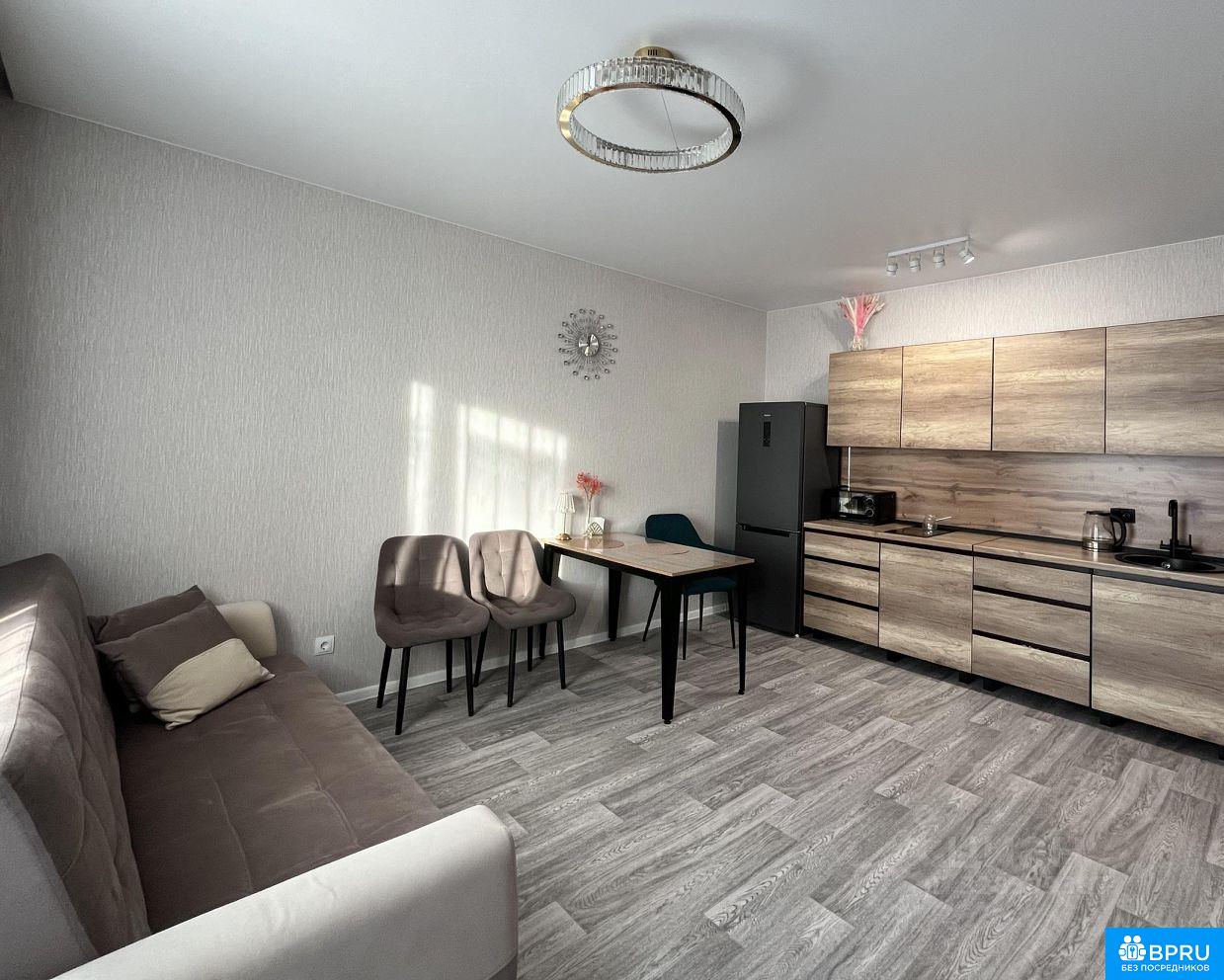 Сдается светлая и просторная 2-комнатная квартира-студия (кухня-гостиная + отдельная спальня) в новом современном доме. Полностью оборудована для проживания. Квартира только после ремонта, никто не жил! Помесячная оплата + счетчики (вода, свет)