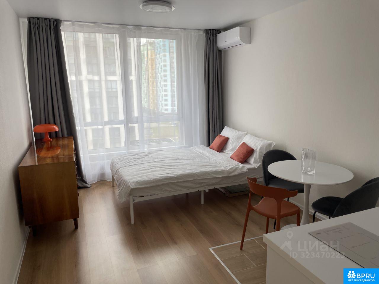 Полностью готова к проживанию одного человека или пары. Имеется кондиционер, холодильник, плита, стиральная машина. В прихожей большая гардеробная зона. КОМИССИИ НЕТ