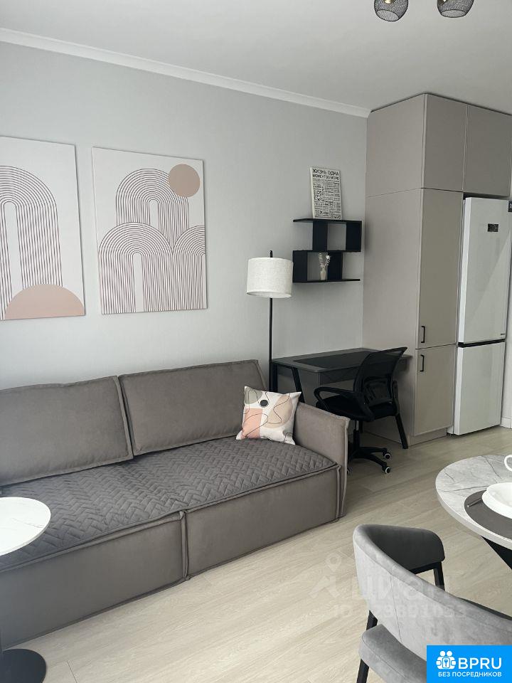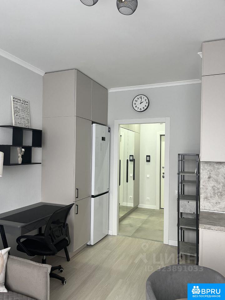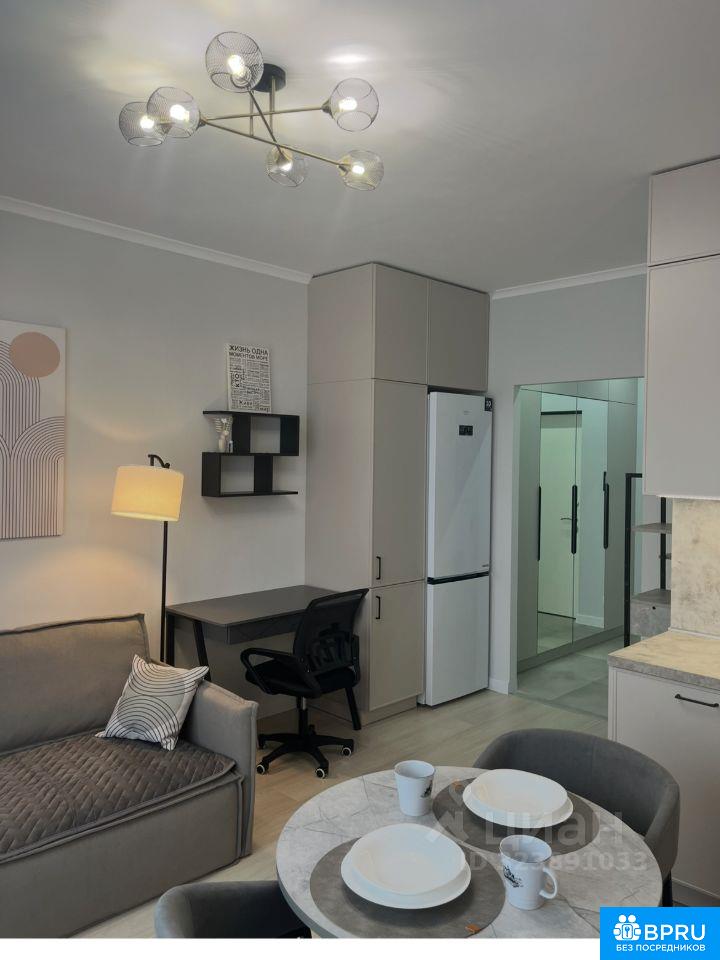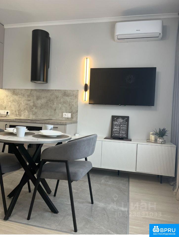 ремонтом. Студия полностью обставлена мебелью и техникой. Кондиционер,духовой шкаф, индукционная плита, вытяжка,СВЧ,холодильник с морозильной камерой, стиральная машина,посудомоечная машина,,электрочайник, телевизор. Проведен интернет.вся мебель и техника новая. Территория дома закрытая, в подъезде консьерж.Сдается на длительный срок.
