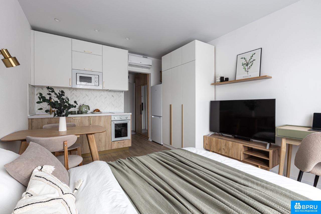 Сдается стильная студия в ЖК Руставели, 14. Предлагается в аренду уютная и полностью оборудованная умная студия. Квартира сдается впервые. Современный ремонт, качественная техника и стильная мебель. Установлен умный дом: управление группами света, кондиционером, радиатором, бризером голосом через колонку и телевизор с Алисой. Установлен умный замок - вход в квартиру по отпечатку пальца или через пин код (для посетителей). Комфорт обеспечит удобный ортопедический матрас. Студия очень светлая, расположена на 3 этаже, что очень удобно, без зависимости от лифта. Идеальный вариант для одного человека или пары, кто ценит комфорт и современные технологии. Сдаю как собственник, без участия агентов