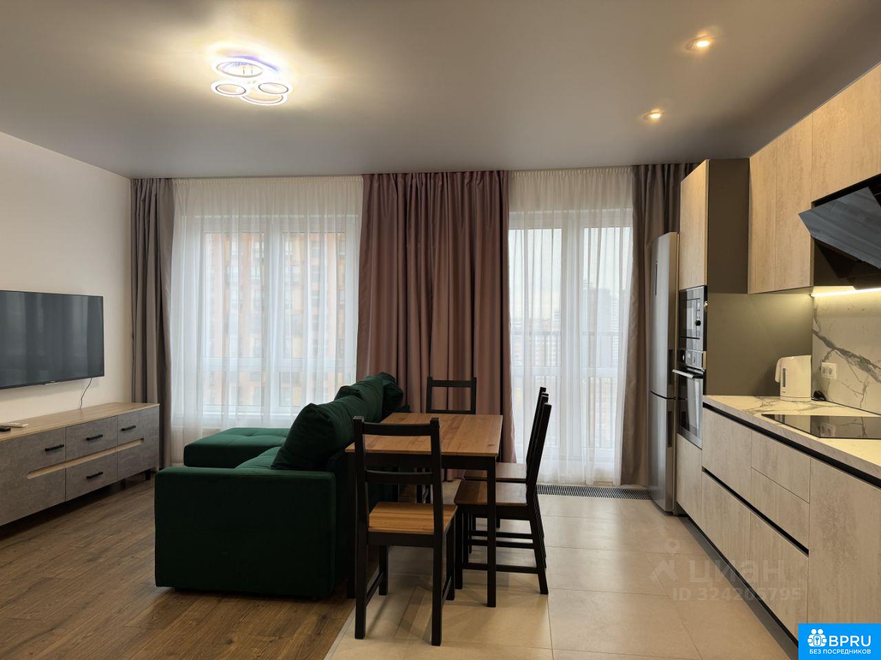 Новая уютная светлая евро-трёшка 56 м² на 17 этаже в новом доме: кухня-гостиная 22,5 м², две изолированные спальни 12,5 м² и 10 м², два санузла. Пешая доступность до м. Авиамоторная! В квартире имеется всё для комфортной жизни! Сдаётся на длительный срок. Строго без животных. Из окон и французских балконов открываются панорамные виды на Москва-Сити и Высотки. Квартира угловая, солнечная, с окнами на восток и юг — свет и уют здесь круглый день. Интерьер выполнен в современном стиле с использованием качественных материалов. Всё абсолютно новое — мебель, техника, сантехника. Установлены бризеры, блэкаут-шторы, система защиты от протечек, счётчики на все коммуникации, Wi-Fi роутер и умный домофон (управление через смартфон). Кухня-гостиная 22,5 м² — просторная и функциональная. Встроенный гарнитур от "Стильные кухни", вся техника Electrolux и Haier: холодильник No Frost, индукционная варочная панель, духовой шкаф, встроенная СВЧ, посудомоечная машина, чайник и каминная вытяжка. Есть обеденная зона на 4 человека, подсветка рабочей зоны, кондиционер, Smart Android TV Sony и уютный угловой диван с местом для хранения. Основная спальня 12,5 м² с окнами на две стороны: двуспальная кровать с подъёмным механизмом, ортопедический матрас Askona Balance 2Sides, большой шкаф с зеркалами, рабочее место и прикроватные тумбы. Вторая спальня 10,1 м² — светлая и тихая, с широкой односпальной кроватью (также с подъёмным механизмом), ортопедическим матрасом Askona SOUL Fines, шкафом с зеркалом и рабочим местом. Основной санузел 3,9 м² — с ванной, стиральной машиной, шкафом с подсветкой и полотенцесушителем. Гостевой санузел 1,4 м² — компактный, но полностью оборудованный. Входная группа (коридор) 5 м² — оборудована прочной стальной дверью с зеркалом, шкафом для верхней одежды/обуви, комодом и удобной обувницей. Во всей квартире — приятный тёплый свет, натуральные оттенки и внимание к каждой детали. Дом новый, современный, с четырьмя лифтами и видеодомофоном. Благоустроенная территория с детской площадкой и зоной отдыха. В шаговой доступности магазины Дикси/Магнит/Перекресток, пункты выдачи Ozon и Wildberries, кафе и городская инфраструктура. Квартира полностью готова к заселению. Возможна комплектация дополнительным оборудованием: сушкой для белья, гладильной доской, пылесосом, постельным бельём и кухонными принадлежностями — по согласованию. Сдаётся на длительный срок. Строго без животных. PS (кратко к риэлторам, агентам и пр. специалистам по недвижимости): не беспокоить! Перепечатывать фото и объявление не разрешу. Личный номер для спама и сбора перс. данных не дам.