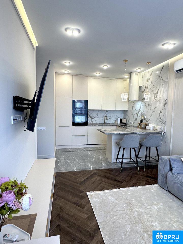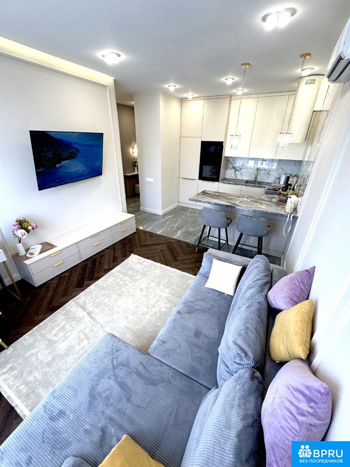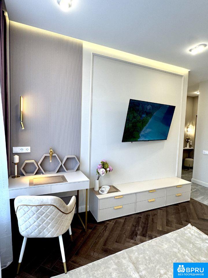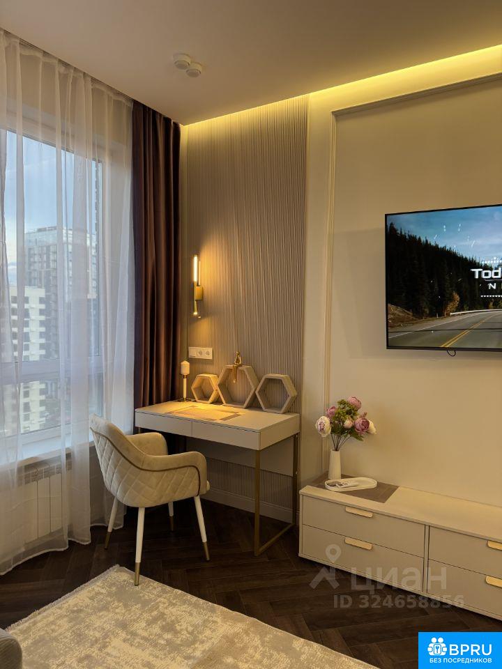 ВИДОВАЯ КВАРТИРА С ДИЗАЙНЕРСКИМ РЕМОНТОМ! Абсолютно новая квартира с ремонтом из дорогих материалов, выполненным для себя с вниманием к деталям. Квартира находится в 11 корпусе ЖК Holland Park — одном из самых удачных корпусов комплекса, вдоль центрального бульвара, рядом с набережной Москвы-реки и экопарком Primavera. До метро Спартак - 8 минут пешком. О КВАРТИРЕ: * Евродвушка 42,7 мг, 11 этаж 24-этажного монолитного дома. * Высокие потолки (3,02 м), панорамные окна, французский балкон. * Закрытая территория и двор без машин. * Потрясающий панорамный вид на центральный бульвар района, храм и Москву-реку, без лишних крыш перед глазами. ПЛАНИРОВКА: * Кухня-гостиная с полноценной рабочей и обеденной зонами. * Изолированная спальня с французским балконом. * Просторный санузел ОСНАЩЕНИЕ: * Кухня-гостиная: встроенная мебель, холодильник, посудомоечная машина, индукционная плита, духовой шкаф, микроволновка, вытяжка, угловой диван, ковер, рабочий стол, большой смарт-ТВ, бризер, кондиционер, теплый пол, зонированное освещение. * Спальня: кровать 180 на 200 с подъемным механизмом (доп. место хранение), встроенный шкаф во всю стену с зеркалом в пол, туалетный столик, 2 прикроватные тумбы, кондиционер, декоративное зеркало с подсветкой * Санузел: ванна из литого мрамора, зеркало с подогревом, стиральная машина с сушкой, электрический полотенцесушитель, теплый пол * Коридор: большой встроенный шкаф с зеркалом в пол, консоль, пуф ДЕТАЛИ: * Дорогие двери (2300 мм, Ягуар), кварцвиниловый пол, керамогранит. * Сложная электрика с продуманным расположением розеток * Потолки с нишами и скрытой подсветкой. * Есть бытовые мелочи: чайник, посуда, гладильная доска, интерьерный декор, интернет ИНФРАСТРУКТУРА: Окружающий район идеально подходит для комфортной жизни. В пешей доступности располагаются магазины, рестораны, кафе, салоны красоты, теннисный корт и крупнейший в Москве дворец спорта Чкалов Арена. В районе функционируют детские сады и школы, спортивные площадки и разные магазины. Кроме того, рядом строится второй дворец спорта с бассейном, хоккейной ареной и площадкой для спортивных танцев, а также центр спортивной медицины. Подземный паркинг (есть свое машиноместо, которое можно арендовать отдельно) УСЛОВИЯ АРЕНДЫ: * Длительная аренда (от 11 месяцев) * Без животных, некурящим * Коммунальные платежи включены (кроме счетчиков) * Квартира от собственника, без комиссии АГЕНТОВ ПРОШУ НЕ БЕСПОКОИТЬ!