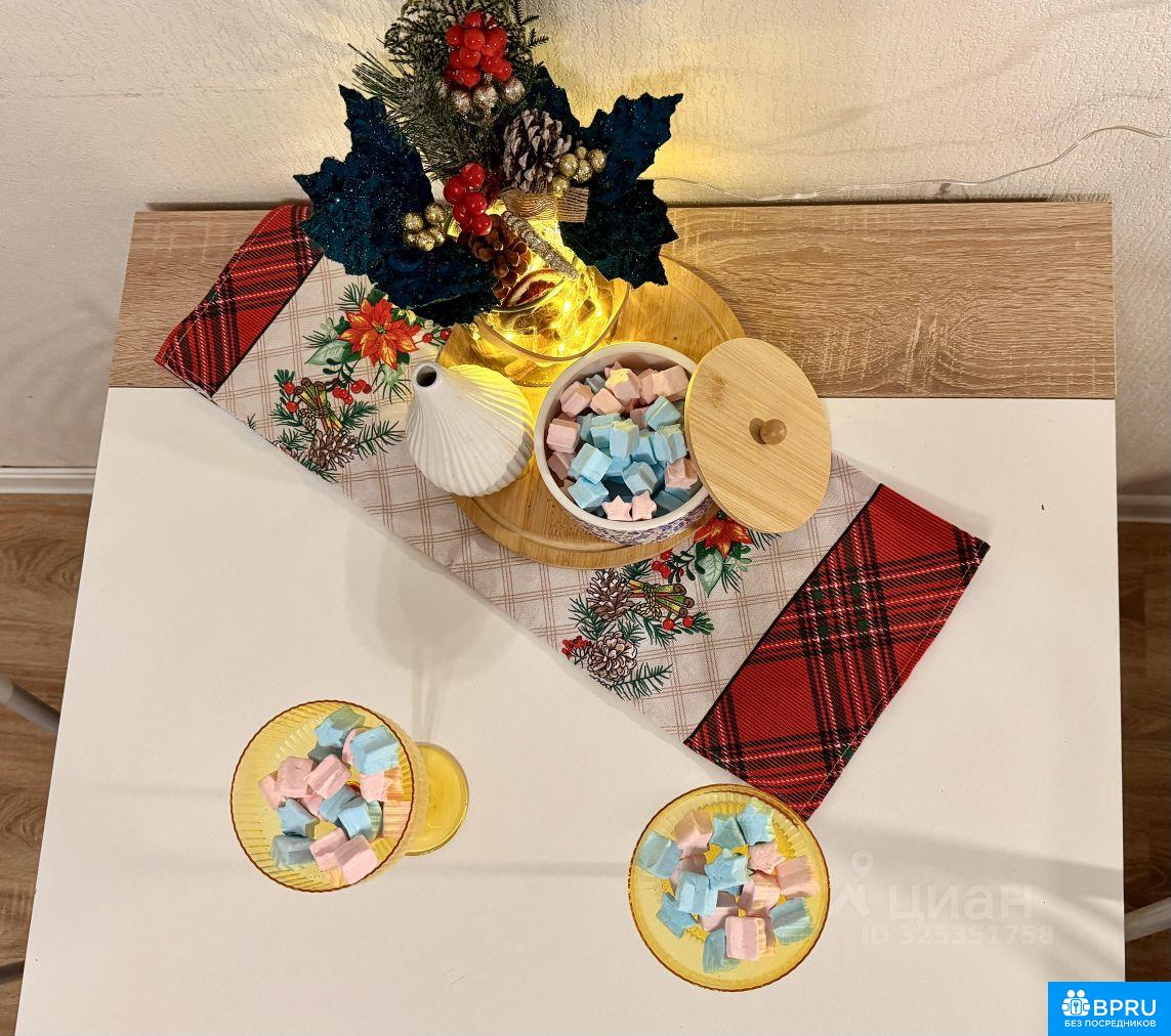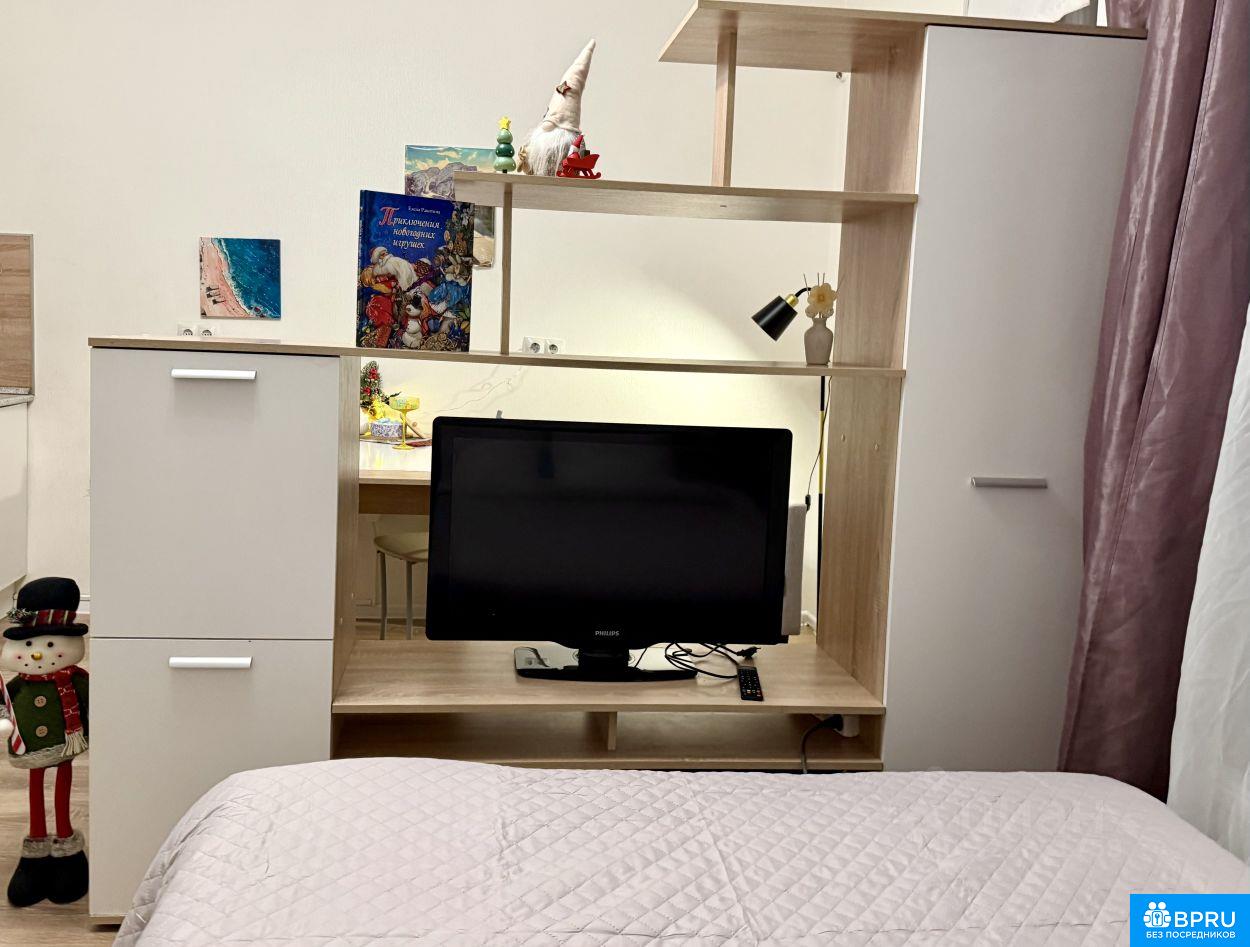 Сдается уютная студия, которая уже ждёт праздника! Вас встретит не просто квартира, а настоящий новогодний уголок с атмосферой волшебства. Всё для комфортной жизни уже есть: Спальня: широкая кровать с ортопедическим матрасом для идеального сна. Отдых: большой телевизор для просмотра любимых новогодних фильмов. Кухня: полностью оборудована и стильно оформлена в праздничном стиле — готовьте ужины в окружении огоньков. Вся инфраструктура в пешей доступности: школы, детские сады, остановка,магазины, салоны красоты, .. Прямо за домом расположен живописный парк. Идеально для одного человека или пары, кто ценит уют. Праздник начинается здесь!