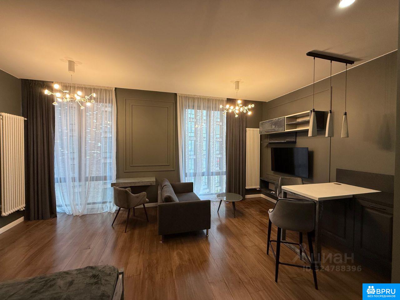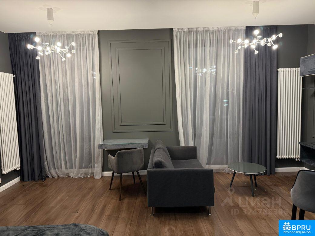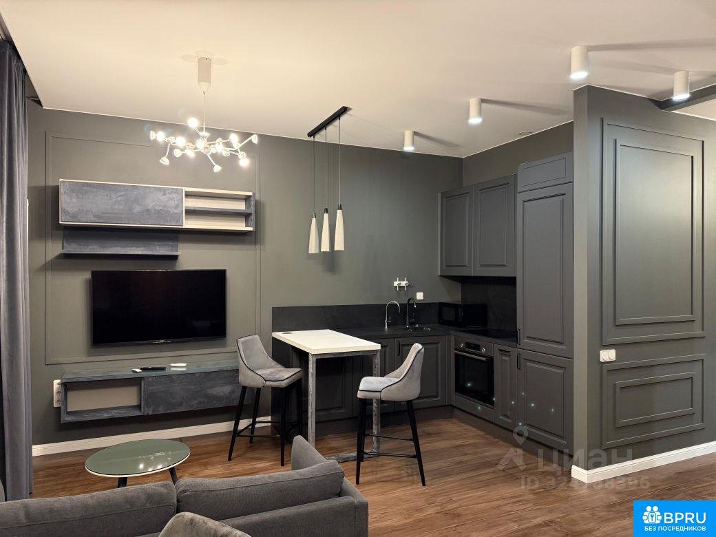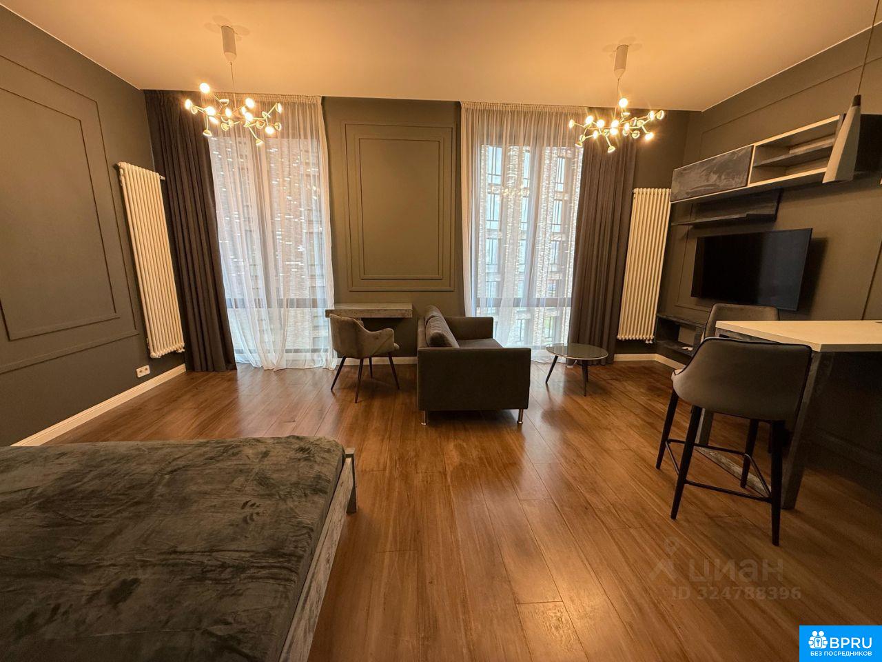 шикарная однокомнатная квартира-студия, с мебелью, двухспальной кроватью, имеется микроволновка, посудомоечная машина, телевизор, холодильник,кондиционер,умные шторы на окнах,стиральная машина, пылесос, сушилка, стремянка.