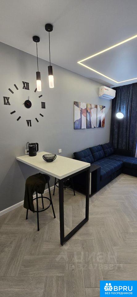 Сдается студия с дизайнерским ремонтом в ЖК Символ. Имеется вся необходимая техника, посуда, мебель в наличии. Светлая студия с высокими потолками, с прекрасным видом на Москву с высоты 26 этажа. В шаговой доступности магазины, рестораны, спортклуб и парк Зелёная Река. Прекрасно оформленная входная группа, огороженная охраняемая территория.