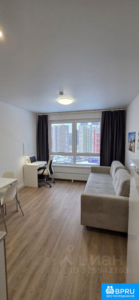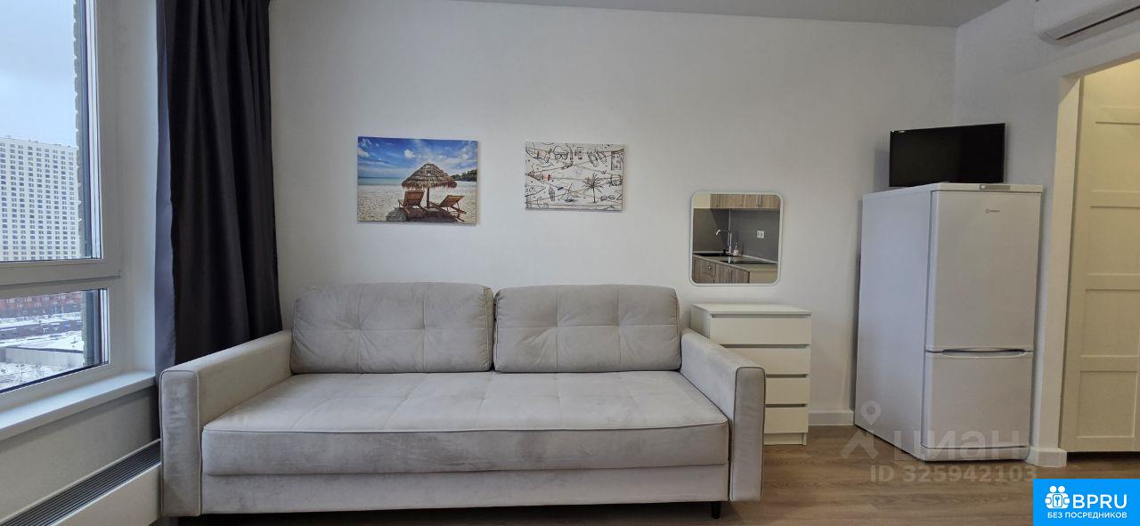 От собственника! В 2-х минутах ходьбы от станции метро "Аминьевская" сдается на длительный срок в аренду уютная, светлая, видовая однокомнатная квартира студия на ул. Очаковское шоссе д. 5 на 18 этаже 33-этажного дома с видовыми характеристиками и спокойными соседями. Полностью оснащенная (евроремонт, раскладывающийся диван ASKONA, SMART телевизор, рабочее место, интернет, встроенный кухонный гарнитур, двухкамерный холодильник, посуда, душевой уголок, стиральная машина, кондиционер, микроволновая печь, чайник, ковер и т.д.). Благоустроенный красивый и чистый двор, на первом этаже ПВЗ, продуктовые магазины, аптеки, кафе и рестораны. Фото реальные. Отдам предпочтение порядочным людям без животных, семейным парам. Аренда 65 000 рублей + КУ, страховой депозит 100 % (есть возможность разбить на два месяца).