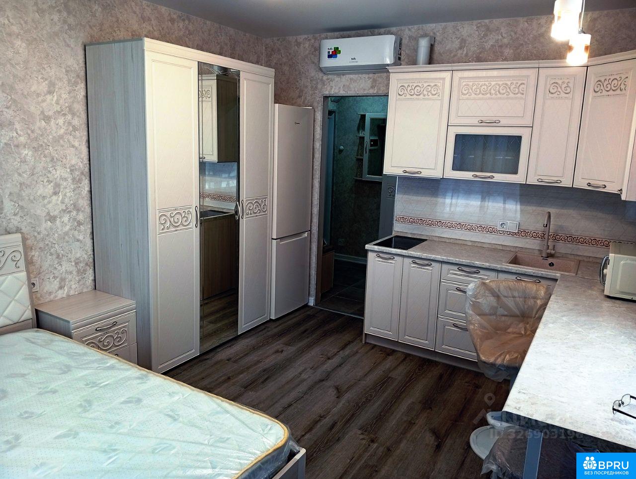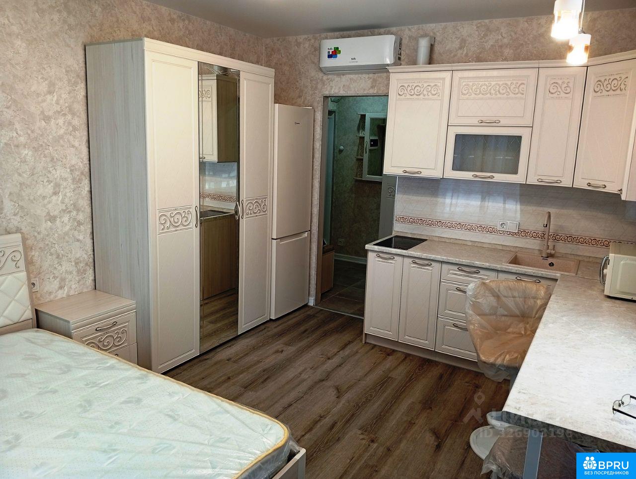 Сдаётся студия площадью 22 кв.м. В студии 2 окна, во двор. Сдаётся впервые. На долгосрок. Всё новое! Ремонт с нуля, а не от "застройщика". Этаж 2-ой в 5-ти этажном корпусе. Намного тише и спокойнее чем в 24-х этажном! Кухонная зона: Пять навесных и Четыре напольных шкафа Стол (длина 2 м.) Полноразмерный холодильник (высота 1,96 м.) Электрическая плита (2 конфорки) Вытяжка (над плитой) Микроволновая печь Поворотный стул и Табурет Спальная зона: Двуспальная кровать (ширина 1,4 м.) Прикроватная тумбочка Трехдверный шкаф с зеркалом Телевизор Android (40" дюймов) Прихожая: Двухдверный шкаф Открытая вешалка с обувницей Зеркало Санузел: Стиральная машина (4 кг.) Глубокий и Широкий душевой поддон (1х1 м., глубина 0,45 м.) Электрической полотенцесушитель (0,8х0,6 м.) Зеркало-шкаф с подсветкой Вытяжка Кондиционер Страховой депозит в размере месячной арендной платы делится на два месяца. Интернет проведён, Роутер с WiFi До метро Солнцево - 10 мин. пешком Проживание: 1 человек или пара, не курящие, без животных.