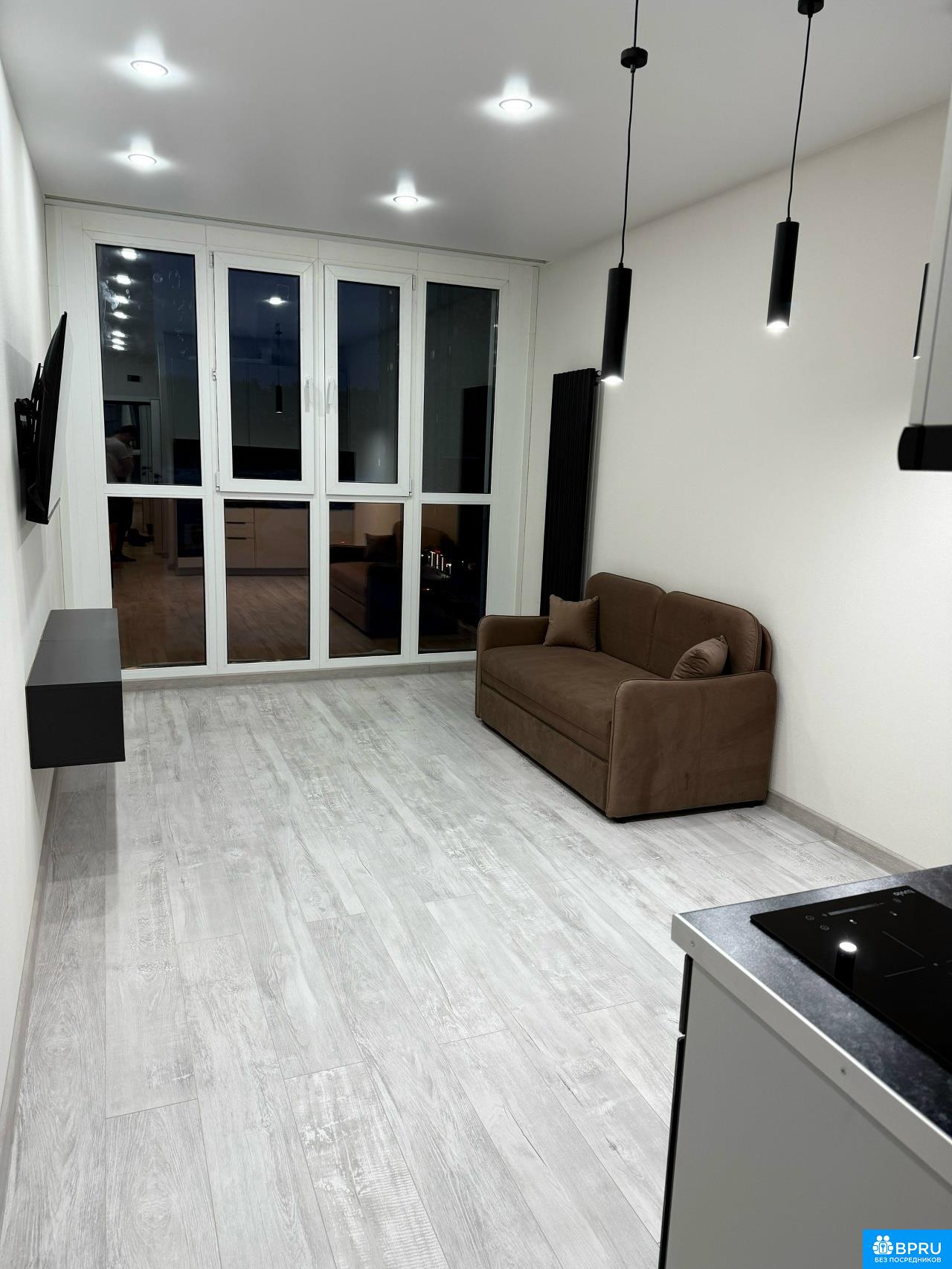 Сдается стильная квартира на длительный срок. В квартире выполнен свежий евро ремонт, что создает уютную атмосферу. Просторная студия площадью 23 м² включает в себя кухню и зону отдыха. Кухня оборудована современной техникой, включая холодильник и плиту. В зоне отдыха установлен удобный диван и телевизор. Ванная комната совмещенная, оснащена душевой кабиной и стиральной машиной. В прихожей предусмотрен удобный шкаф для хранения вещей. Квартира расположена на 8 этаже монолитного дома, построенного в 2025 году. Дом оснащен двумя пассажирскими лифтами и одним грузовым лифтом. Для автомобилей предусмотрена открытая парковка во дворе. Курение и проживание с детьми или животными не допускается. Интернет подключен через Wi-Fi. P.S. Шторы, стол и стулья появятся в ближайшие дни. Собственник!!!!!