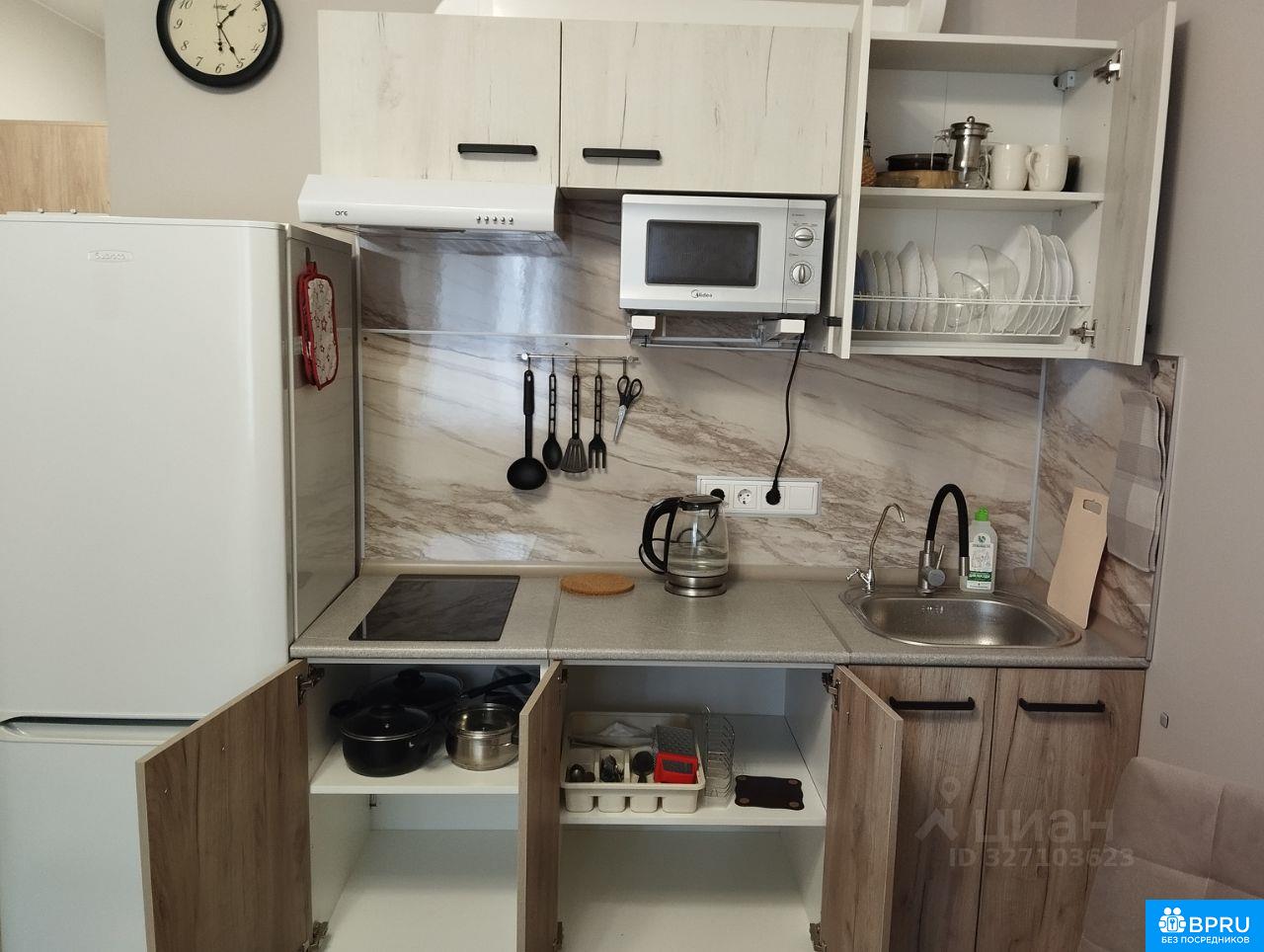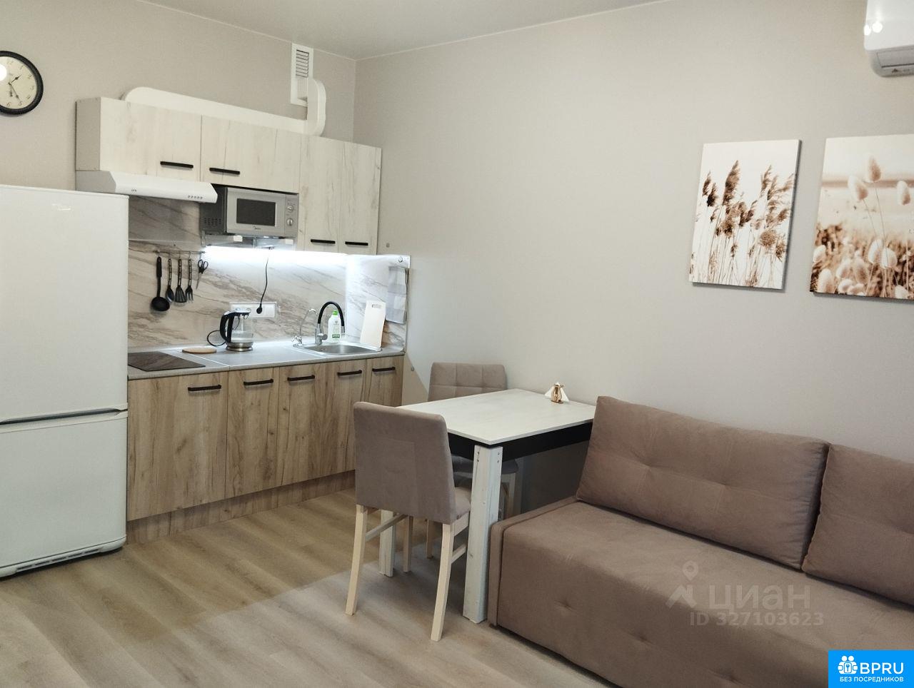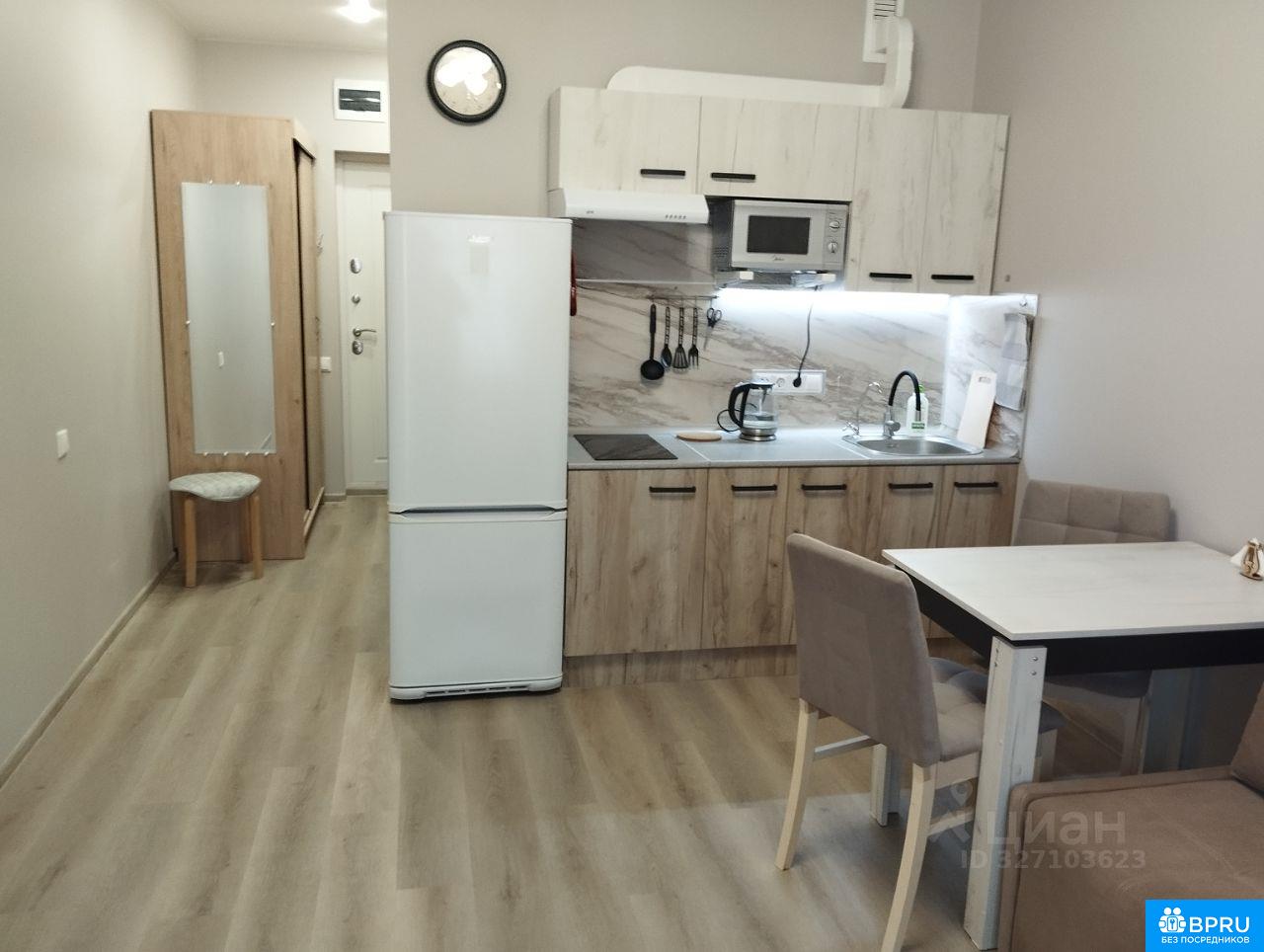 Сдается современная студия в новом монолитном доме, расположенном в 10 минутах пешком от метро Прокшино. Квартира находится на 11 этаже 17-этажного здания, построенного в 2022 году. Общая площадь — 24 кв. м, жилая — 20 кв. м, кухня — 4 кв. м. Высота потолков — 2.84 метра. В квартире выполнен качественный ремонт. В комнате и на кухне есть вся необходимая мебель. Квартира оборудована кондиционером, холодильником и стиральной машиной. Санузел совмещенный, в ванной комнате установлена ванна. Окна выходят в тихий двор. Дом оборудован двумя грузовыми лифтами наземной и подземной парковкой. В шаговой доступности находятся магазины Перекресток, Пятерочка, Вкусвилл, Улыбка радуги. Условия аренды: квартира сдается на длительный срок. Без комиссии. Залог — один месяц. Арендаторам без детей и домашних животных. Квартира идеально подходит для одного человека. Регистрацию не делаем. Звоните.