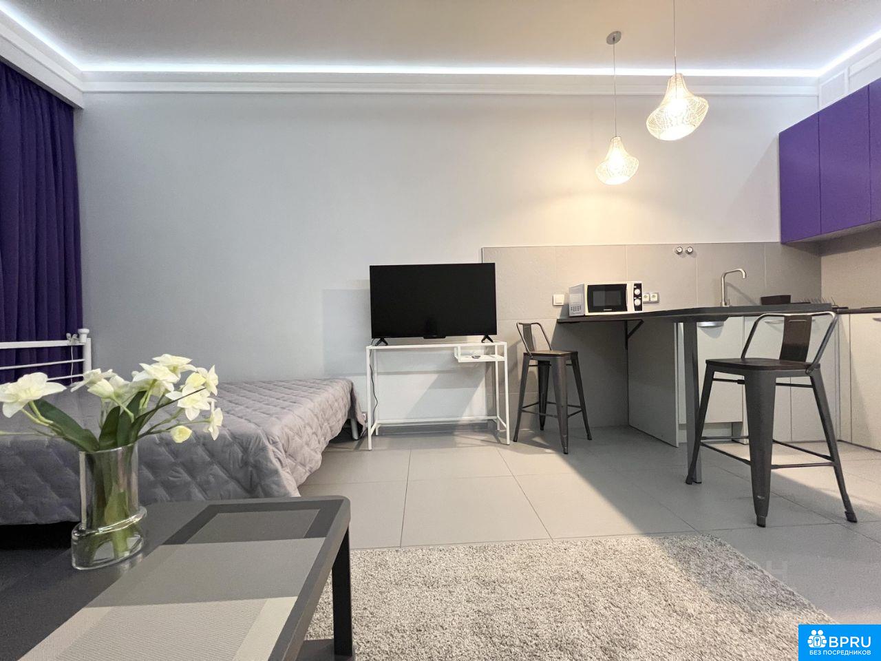 Студия оборудована всем необходимым для комфортного проживания - кондиционер (обогрев и охлаждение)/ холодильник/ варочная электрическая плита 3 конфорки/ микроволновая печь/ посудомоечная машина/ стиральная машина/ холодильник/ электрический чайник/ кровать 200х140/ раскладной диван со спальным местом 200х140см/ рабочий стол/ телевизор 43* с Алисой/ 2 настенные сушилки для белья/ утюг и гладильная доска/ пылесос/ много мест хранения. В апартаменте сделана дополнительная шумоизоляция, есть система защиты от протечки воды и страховка на все время аренды. Интернет МТС (оптоволокно) - вайфай и 2 точки подключения по шнуру. Удобное общее и зональное освещение, шторы блэк аут. Имеется минимальный набор кухонной и столовой посуды и приборов. Центральное отопление в холодный период года в доме работает хорошо, как и общедомовая система вытяжной вентиляции. Окна без продуваний. Арендатор оплачивает воду/электричество/интернет по счетчикам и квитанциям. Собственник, сдаю без комиссии, низкая залоговая сумма. Апартамент готов к заселению. Аренда на срок от года. Прошу прощения, не сдаю жильцам с животными и детьми. Агентам буду рада только в том случае, если они приводят клиентов. Субаренда, сдача посуточно и под управление не интересуют, прошу не беспокоить.
