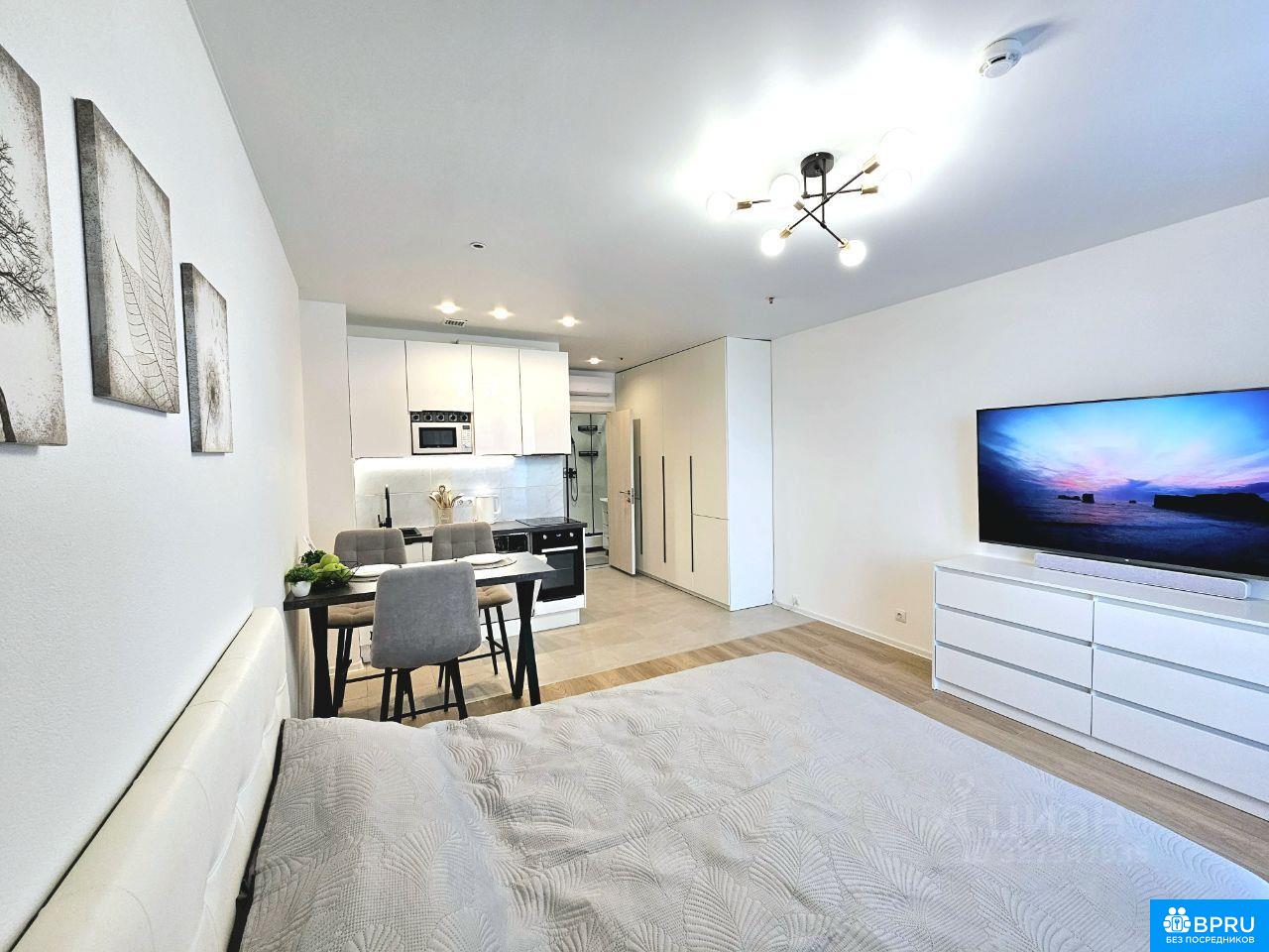 Сдается долгосрочно квартира-студия. Находится в престижном ЖК Волоколамское 24, с отличной транспортной доступностью. От подъезда до метро Стрешнево 35 метров, до МЦД-2 Стрешнево 150 метров, также можно дойти пешком до станции метро Войковской и Щукинской за 15 минут. До Москва-Сити по МЦК - 15 минут. Рядом большой благоустроенный парк-заповедник Покровское-Стрешнево. У дома свои закрытые оборудованные детская и спортивная площадки, вход только для жителей. Подъезд на уровне земли, удобно заходить с коляской или велосипедом. Четыре скоростных грузовых лифта OTIS. На цокольном этаже расположены кладовые помещения и подземный паркинг. Квартира-студия светлая, с видом на парк-заповедник. Комфортная мебель, хорошая современная техника, постельное бельё и прочее необходимое для комфортного проживания всё есть и новое. Зона кухни с качественный гарнитуром с интерьерной подсветкой и встроенной техникой: холодильник, посудомоечная машина, варочная панель, духовой шкаф, микроволновка, вытяжка, кондиционер. Также в наличии чайник, посуда, кухонные принадлежности и столовые приборы. В зоне спальни двуспальная кровать с мягкой кожаной обивкой, подъемным механизмом и качественным матрасом двусторонней жесткости. Большой android телевизор 65', саундбар и вместительный комод. В прихожей два больших шкафа: один зеркальный шкаф-купе со встроенной гардеробной системой, второй со встроенной стиральной машиной и холодильником и большими отделениями для хранения вещей. Санузел также оборудован всем необходимым. Студия просторная, ещё осталось достаточно пространства для организации рабочего места при необходимости.
