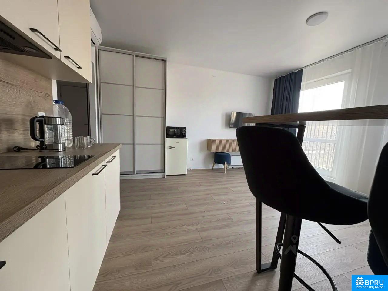 Сдается уютная студия с дизайнерским ремонтом в новом ЖК! Сдаётся светлая и просторная студия (общая площадь 25 кв. м, жилая 20 кв. м) в современном жилом комплексе. Идеально для одного или двух человек. О квартире: Состояние: Все абсолютно новое! Выполнен качественный ремонт, новая мебель и техника. Мебель и техника: Установлены кондиционер, стиральная машина, холодильник, микроволновая печь, электрический чайник. В санузле — современная душевая кабина. Комфорт: Продумано всё необходимое для комфортного проживания. О доме и районе: Этаж: 5 из 33. Инфраструктура: Дом расположен в новом ЖК. Главное преимущество — закрытая территория, двор без машин (безопасно для прогулок и спокойно). Парковка: Имеется подземный паркинг (