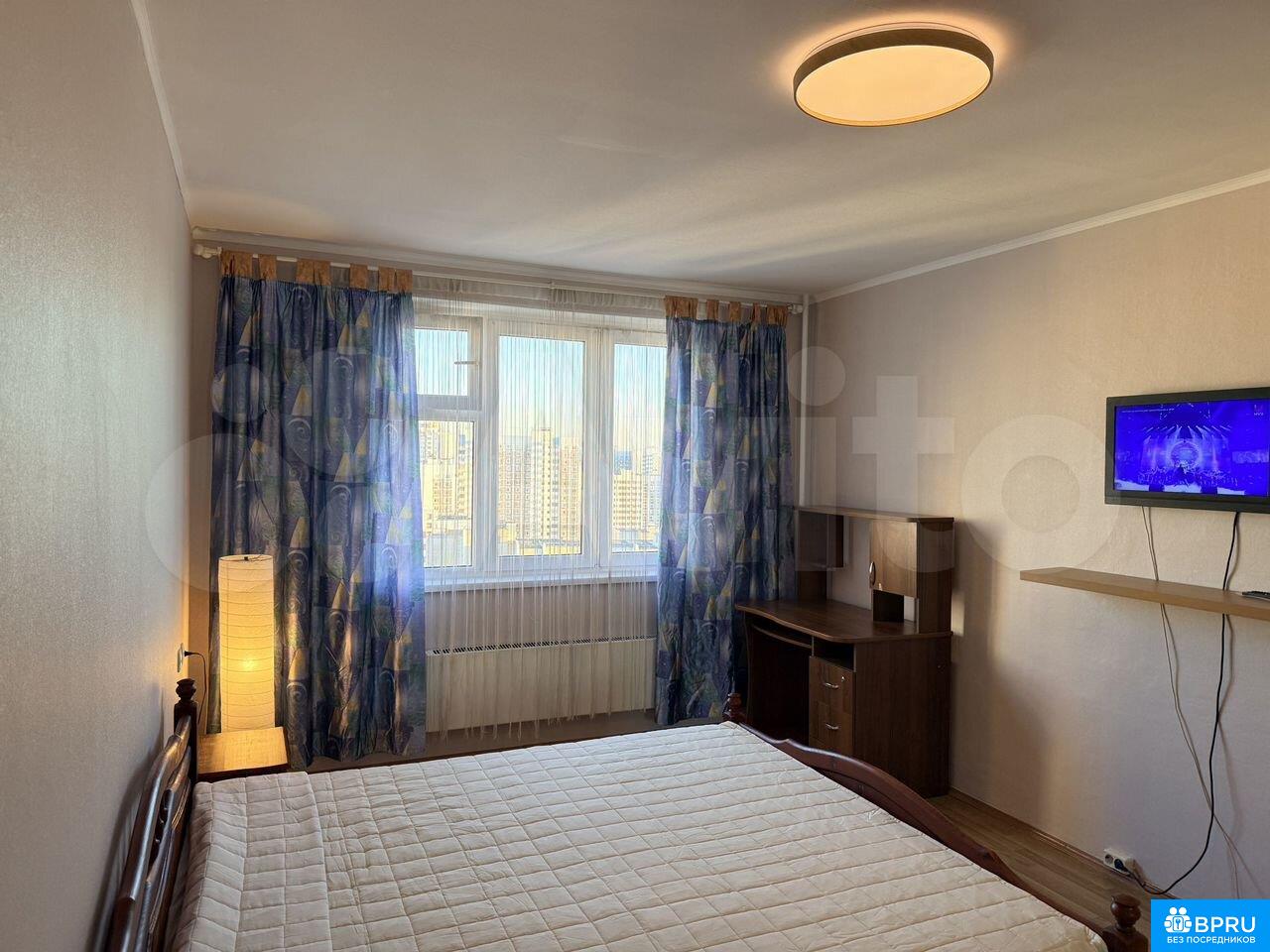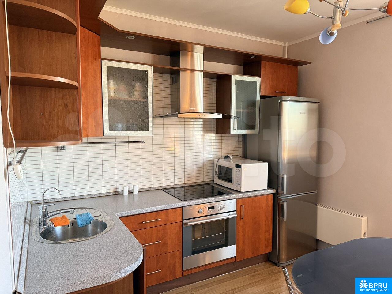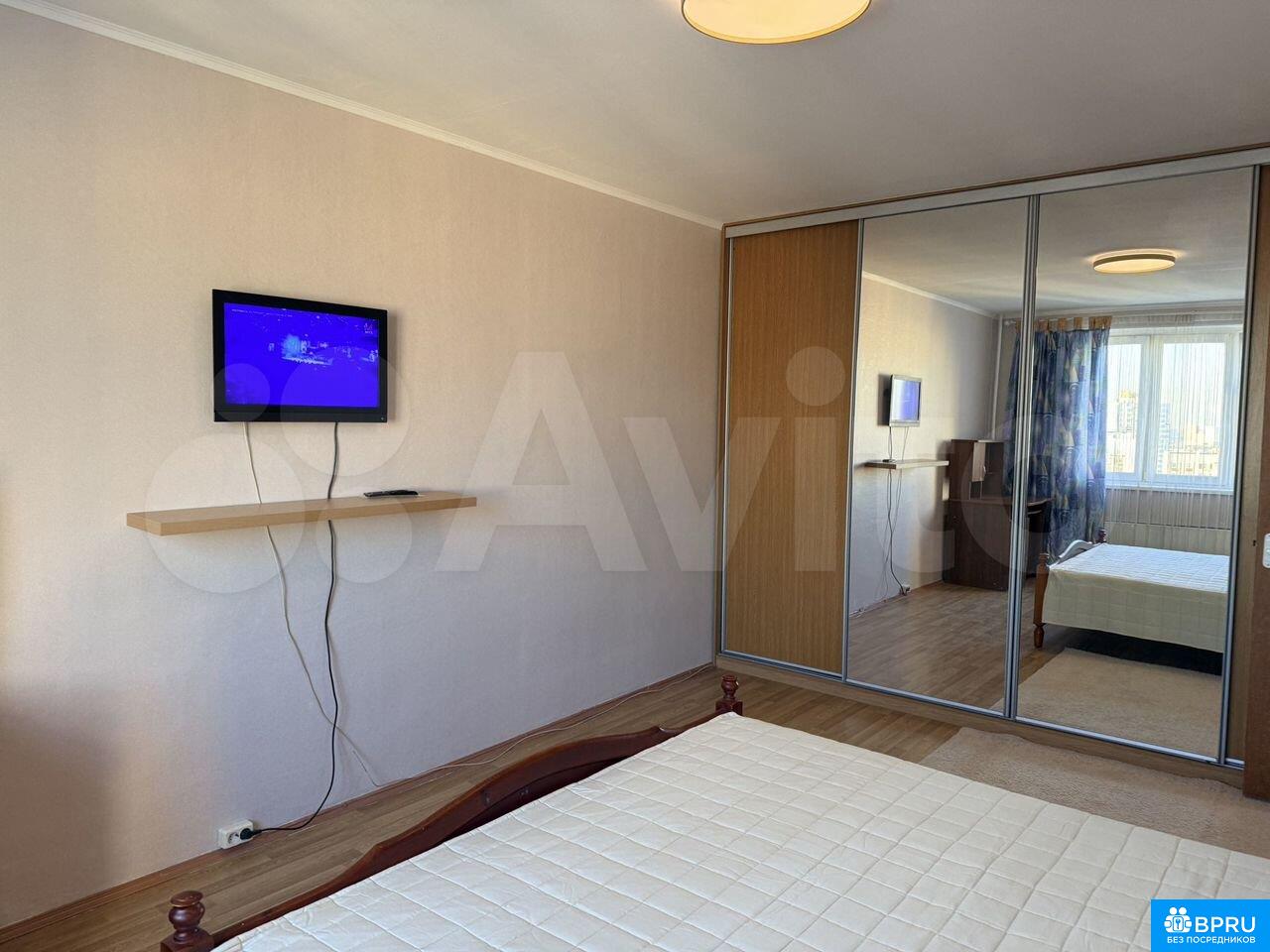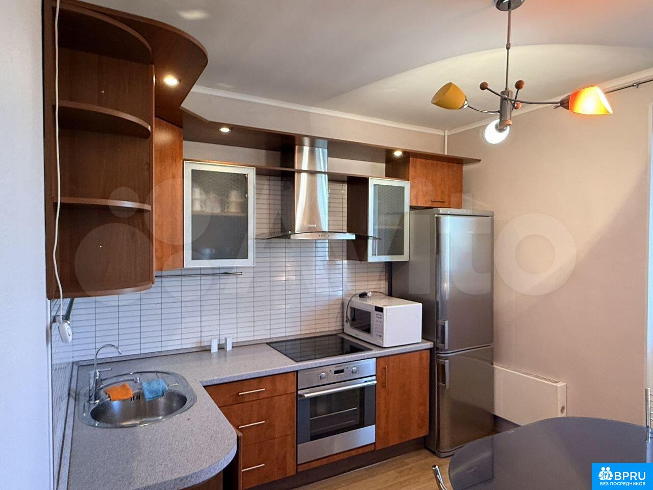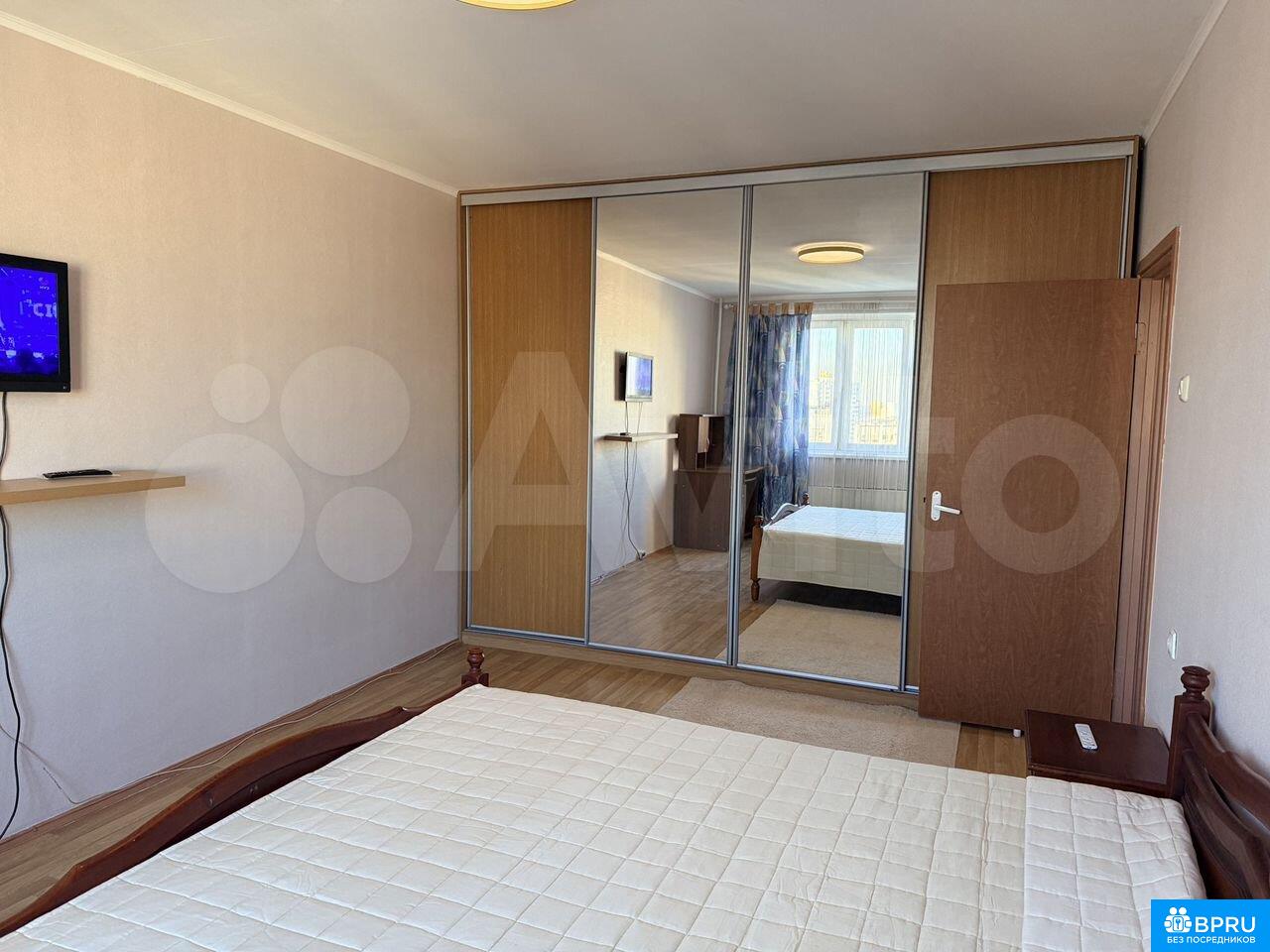 1 комнатная квартира (11+25), встроенная кухня, 2-x камерный холодильник Electrolux, СВЧ, балкон с кухни, застеклен, в большой комнате 2-х спальная кровать с тумбочками, шкаф-купе, телевизор, раздельный с/у, стиральная машинка, окна во двор, на полу ламинат, в подъезде консьерж. от метро Улица Скобелевская 5 мин. Рядом парк.