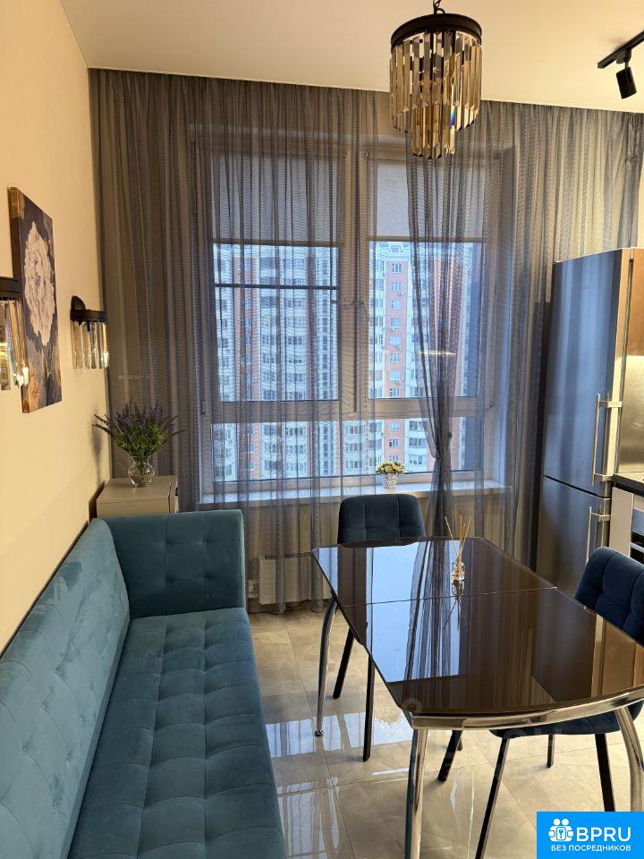 Новая однокомнатная квартира с дизайнерским ремонтом. Полностью оборудована необходимой техникой, кондиционером, мебелью (двуспальная кровать и новый матрас, автоматическое раздвижение штор в спальне). Диван на кухне раскладывается, создавая дополнительное спальное место. Проживание с животными исключается. В доме имеется круглосуточная охрана и консьерж.