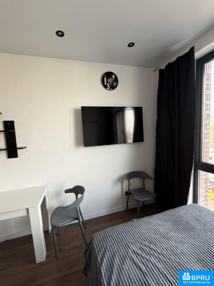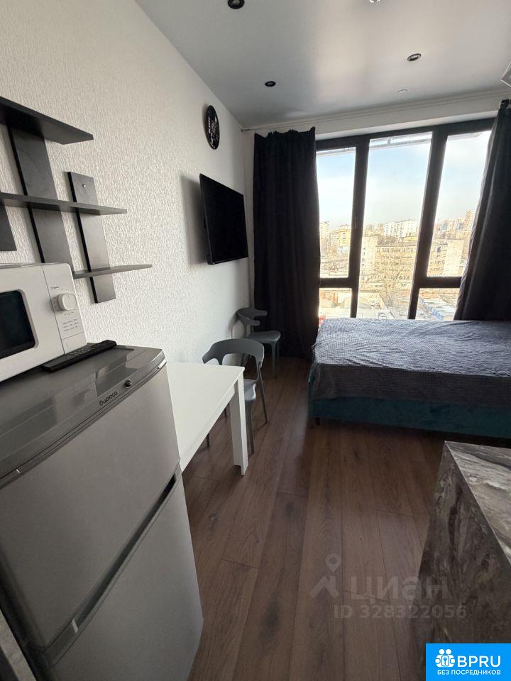 Сдаётся студия площадью 18.2 кв.м. С ремонтом на 8 этаже в 24-этажном доме на длительный срок . Из техники есть: - Телевизор - Стиральная машина - Холодильник - Микроволновка Дом - монолитный, окна выходят на улицу. Есть консьерж. В подъезде 5 лифтов - 1 грузовых и 4 пассажирских. Во дворе есть бесплатная парковка. Коммунальные услуги по