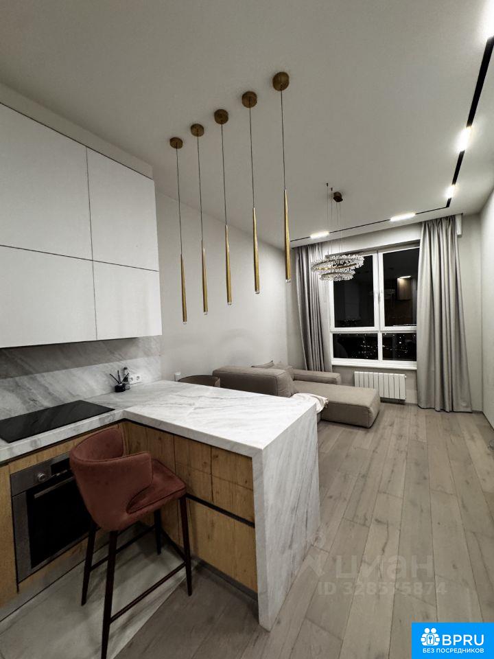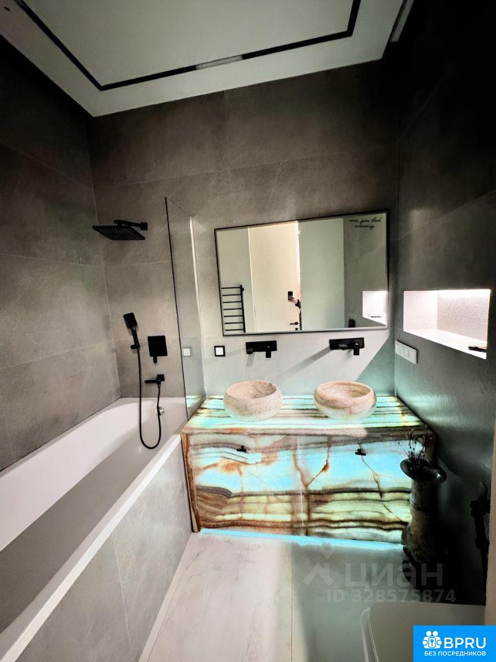 премиум квартира с итальянской кухней (натуральный мрамор) и немецкой техникой. Ванная комната отделана натуральным ониксом. Полы из массива дуба. Кровать Estetica. Встроенные шкафы с мягкой подсветкой. Система умный дом: шторы открываются автоматически. Есть подземный паркинг по-договоренности. жк сердце столицы