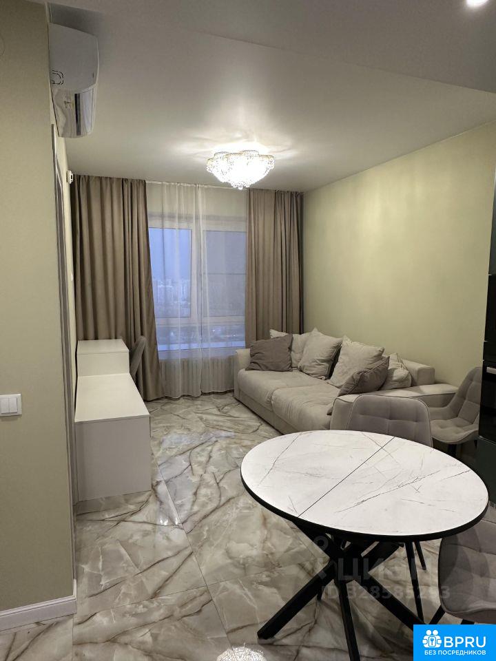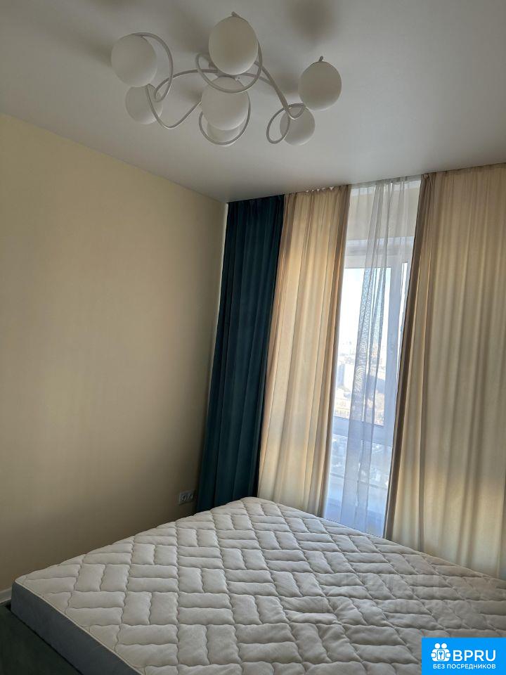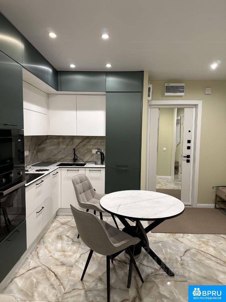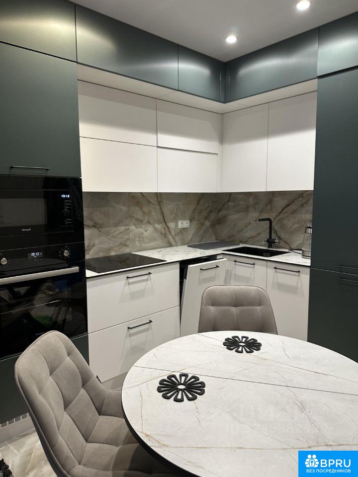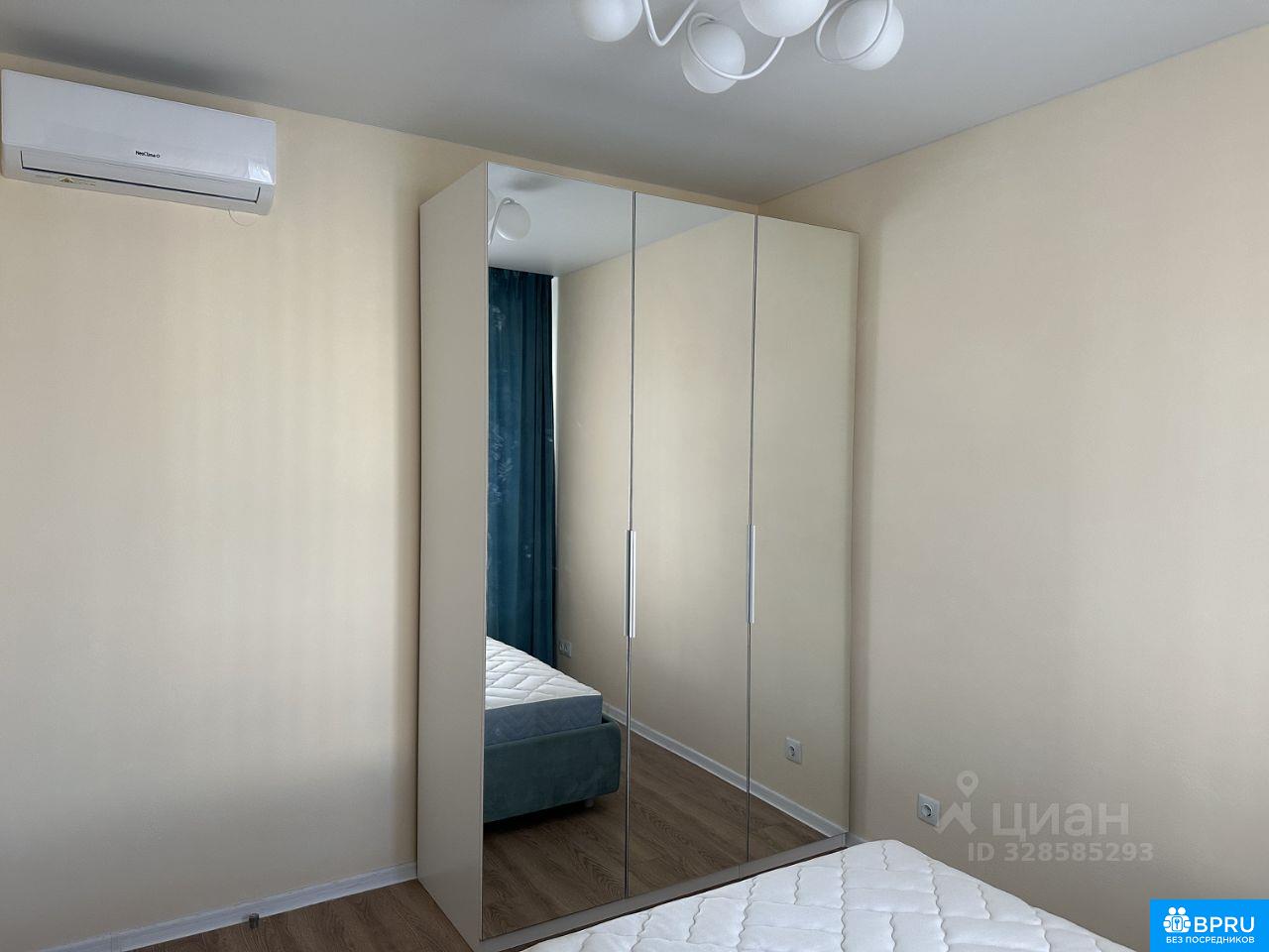 Евродвушка. Кухня-гостиная: пол из керамогранита; на стенах обои под покраску; натяжной потолок; деревянный широкий подоконник; раскладной диван Аскона; новая встроенная мебель на кухне, в гостиной части и в ванне. Спальня: кровать Аскона новая; трехстворчатый шкаф с зеркалами.
