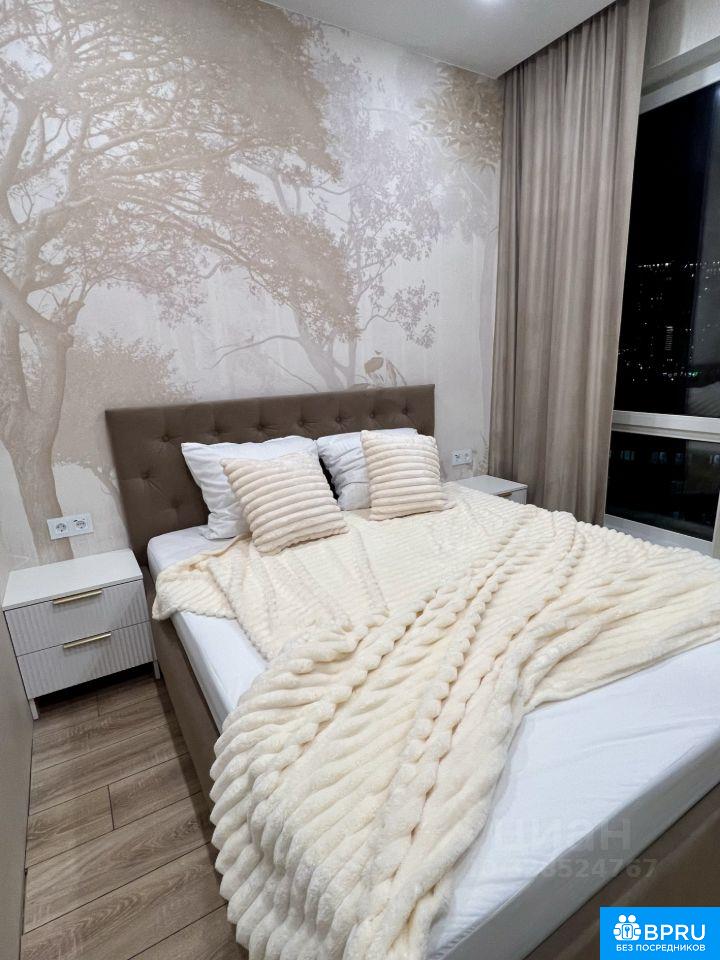Сдается просторная светлая квартира с панорамными окнами в доме бизнес класса. В квартире дизайнерский ремонт, изолированные просторные комнаты 15 и 12 метров, раздельный санузел. Панорамный вид на Метрополию, солнечная сторона. В комнатах вместительный шкаф-купе с зеркалом, кровать, удобный матрас, тумбочки. Кухня площадью 12 м² оборудована современной техникой, включая холодильник, духовой шкаф, посудомоечную машину, индукционнную плиту, микроволновку, чайник. Во всех комнатах установлены кондиционеры, а также имеется кабельное/цифровое ТВ, интернет. В коридоре и ванной тёплый пол, установлен бойлер. Квартира расположена на 9 этаже монолитного дома 2025 года постройки. В доме два пассажирских и один грузовой лифт. Имеется подземная парковка. Курение запрещено, можно проживать с детьми, но без животных. Заселение возможно с понедельника 07 апреля, посмотреть можно в любой день в вечернее время.