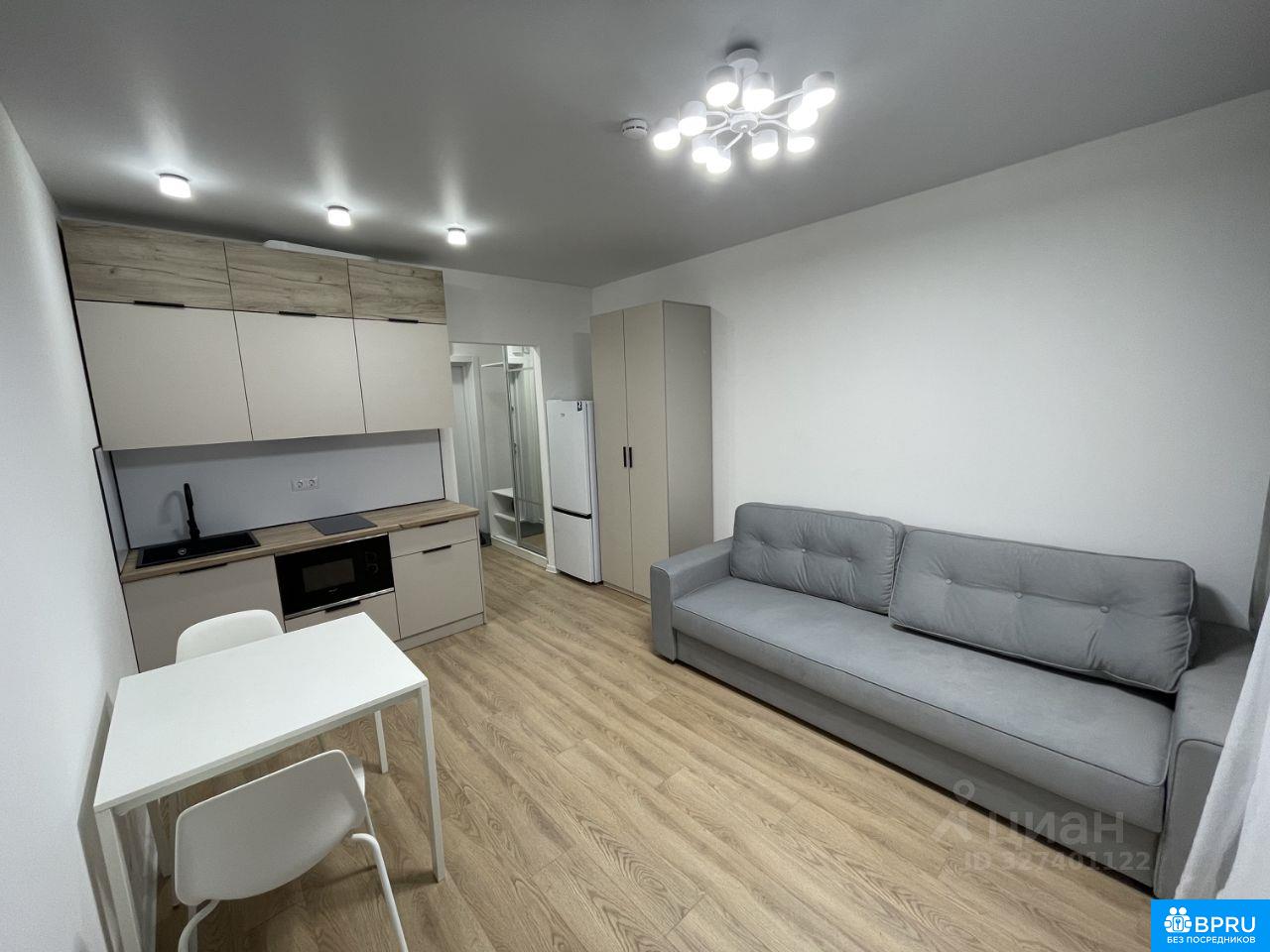 Сдается студия с современным евро ремонтом в монолитном доме 2025 года постройки. Жилая зона площадью 15 мг включает в себя светлую кухню с необходимой техникой: холодильник, плита и микроволновая печь. В комнате установлен удобный диван и вместительный шкаф. Совмещенный санузел оборудован душевой кабиной и стиральной машиной. Из окон открывается вид на городскую застройку и водонапорную башню. Дом оснащен пассажирским и грузовым лифтами, а также открытой парковкой во дворе. Квартира находится на 11 этаже из 13, что обеспечивает отличный обзор и тишину. Курение запрещено, можно проживание с детьми, но без животных. Квартира сдается впервые.Вся мебель и техника новая. Счетчики не включены в стоимость аренды. Залог готов разбить на 2 месяца.