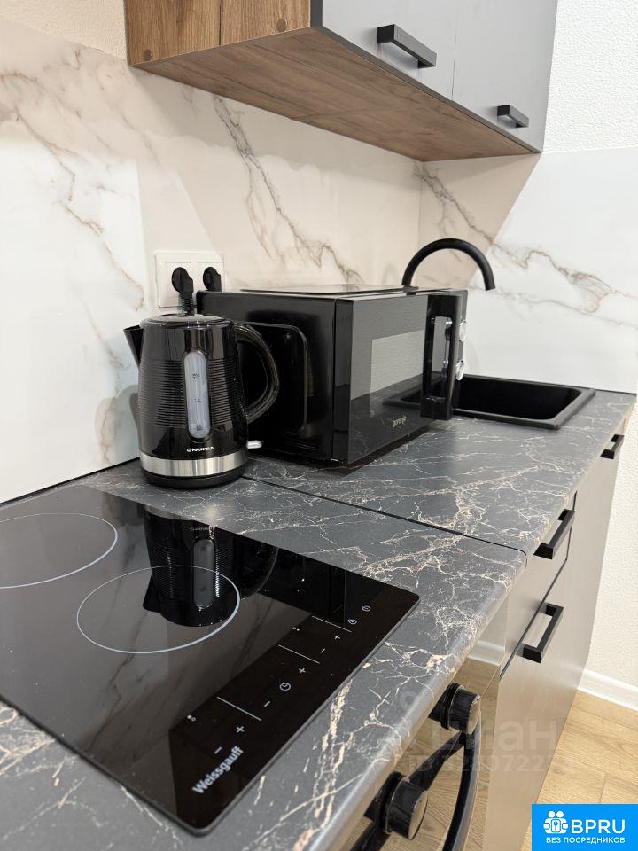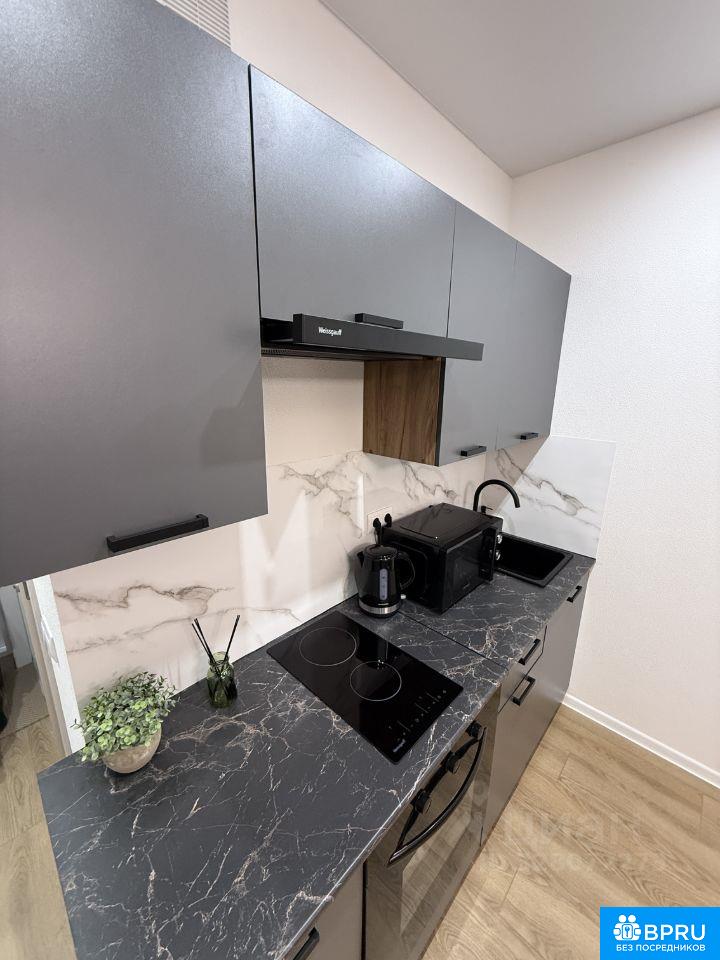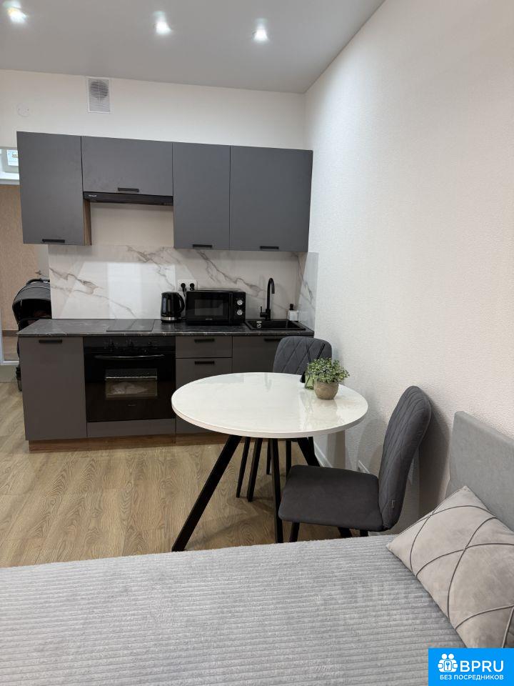 Сдается уютная студия с новой техникой и мебелью. Кухня и шкафы будут установлены 31.03., заселение не раньше 01.04. Квартира расположена на 15 этаже 24-этажного здания. Общая площадь составляет 20 кв. м, жилая площадь — 15 кв. м. Дом оборудован двумя пассажирскими и двумя грузовыми лифтами, а также наземной парковкой для вашего удобства. В квартире сделан качественный евроремонт, что создаёт атмосферу уюта и комфорта. Мы постарались купить все необходимое в квартиру для комфортной жизни: + Кровать с местом для хранения 2000х1400; + Полноценная кухня 2000х600; + Обеденная зона: стол круглый диаметром 900, 2 стула; + Шкаф 800х520 для хранения одежды в коридоре. + Шкаф 1200х520 для хранения одежды в комнате. + Прикроватная тумбочка. ТЕХНИКА: + Холодильник Weissgauff WRK 1520 Defrost; + Стеклокерамическая панель на 2 комфорки Weissgauff HV 32 BKS; + Стиральная машина Weissgauff WM4506 Inverter Steam; + Духовой шкаф с функцией гриля и конвекции Weissgauff EOV 186 LB; + Вытяжка Weissgauff Tel 06 1M BE; + Микроволновка Gorenje MO20E1B; + Чайник Maunfeld MGK-631B. ВАННАЯ: + Душевая кабина; + Полочки в душе для шампуня и мыла; + Крючки для полотенец; + Шкафчик для хранения с зеркалом над раковиной. Надеюсь вам очень понравится в нашей квартире С животными у нас к сожалению нельзя ((( Дом расположен в районе с развитой инфраструктурой. В шаговой доступности находятся клиники, торговые центры (ИЮНЬ). Условия аренды: требуется залог и предоплата. Квартира сдаётся на долгосрочный период, поэтому это отличная возможность для тех, кто ищет уютное жильё в комфортном районе. Ищем постоянных жильцов на долгий срок проживания БЕЗ вредных привычек. ----- Примечание: у собственника могут быть дополнительные пожелания к жильцам - обсудите их в чате или по телефону